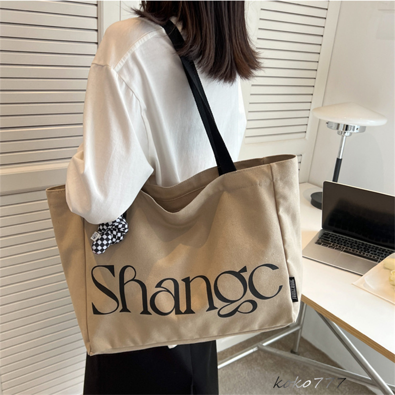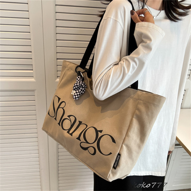 バッグ レディースかばん トートバッグ ショルダーバッグ ハンドバッグ カジュアル カバン 女子 チャック 布鞄 通勤オシャレ 大容量 通学 キャン文字