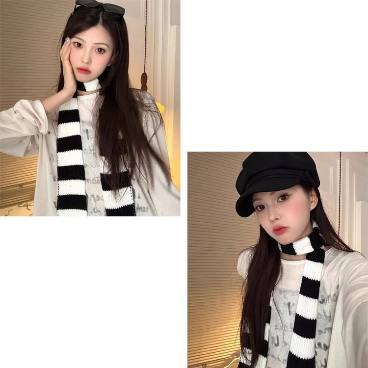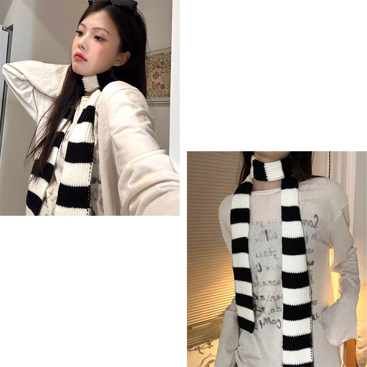 全品送料無料一部除く ボーダー柄 リブニット スリムマフラー トレンド レディース 韓国 おしゃれ プチプラ