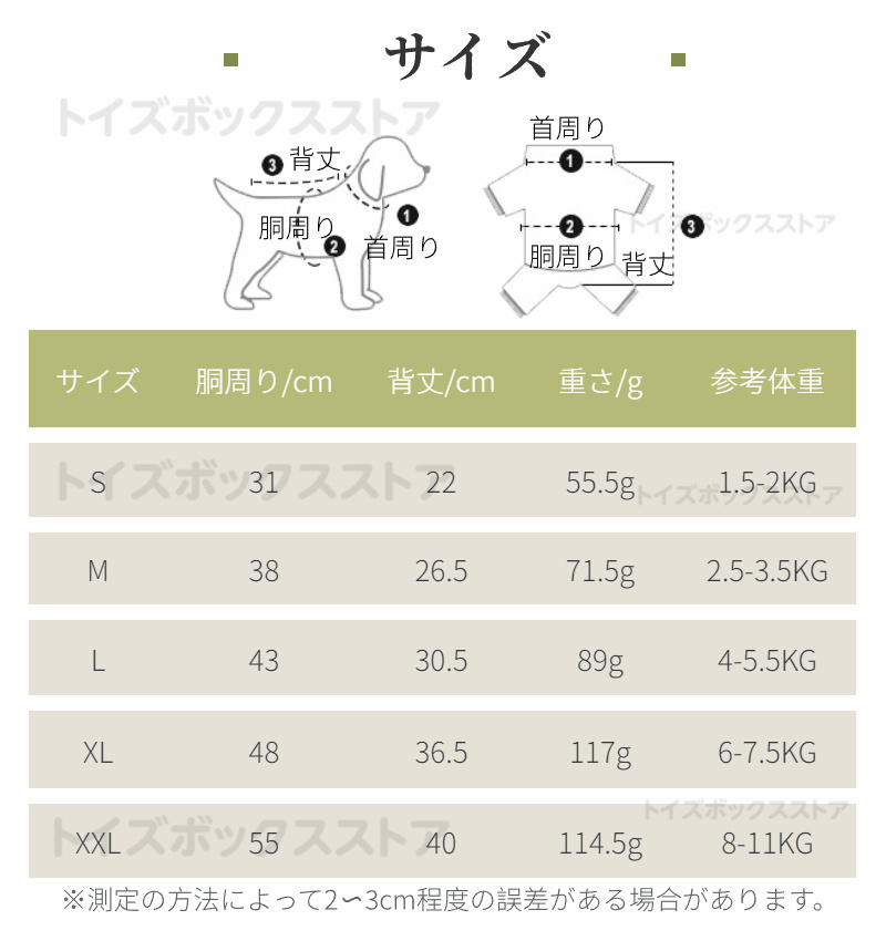 ■ペット服サイズ: Sサイズ Mサイズ Lサイズ XLサイズ XXLサイズ