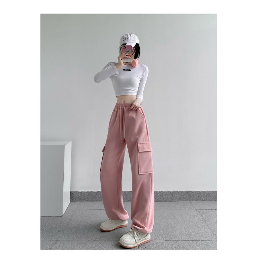 スウェット レディース カーゴパンツ 裏起毛 秋冬 暖かい 柔らか ドローコード付き リラックス ウエストゴム ポケット ゆったり ボ2WAY