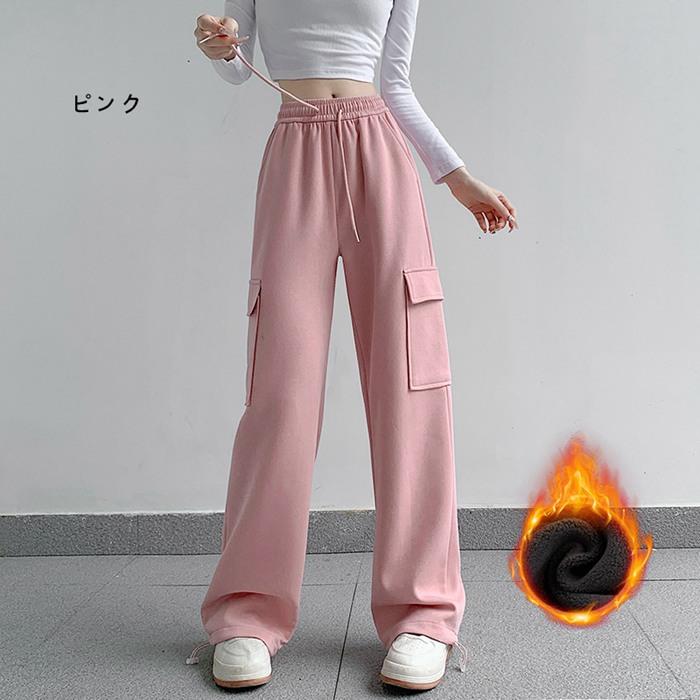 スウェット カーゴパンツ 裏起毛 秋冬 暖かい レディース ボトムス 2WAY リラックス ゆったり 柔らか ウエストゴム ドローコード付き ポケット レディース