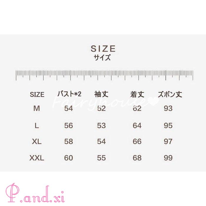 XL バスト 58 袖丈 54 着丈 66 ズボン丈 97 ウエストゴム(CM)