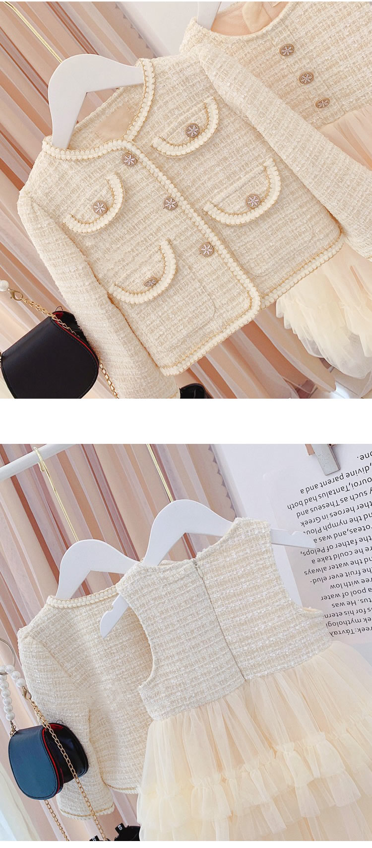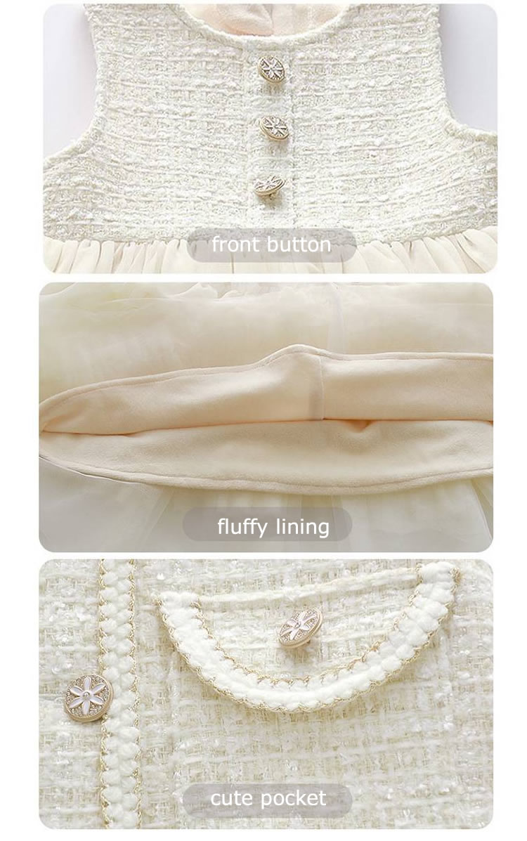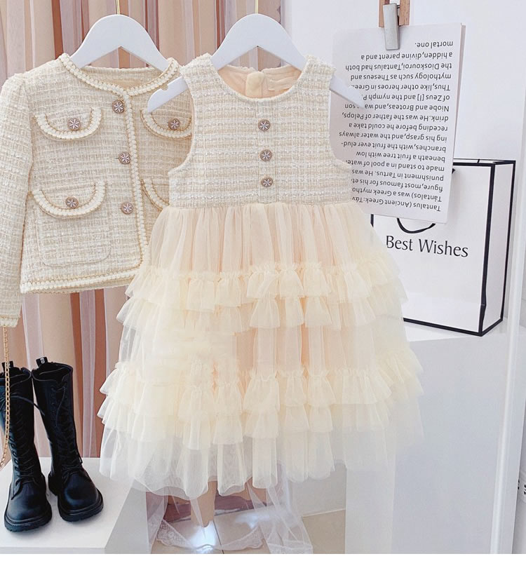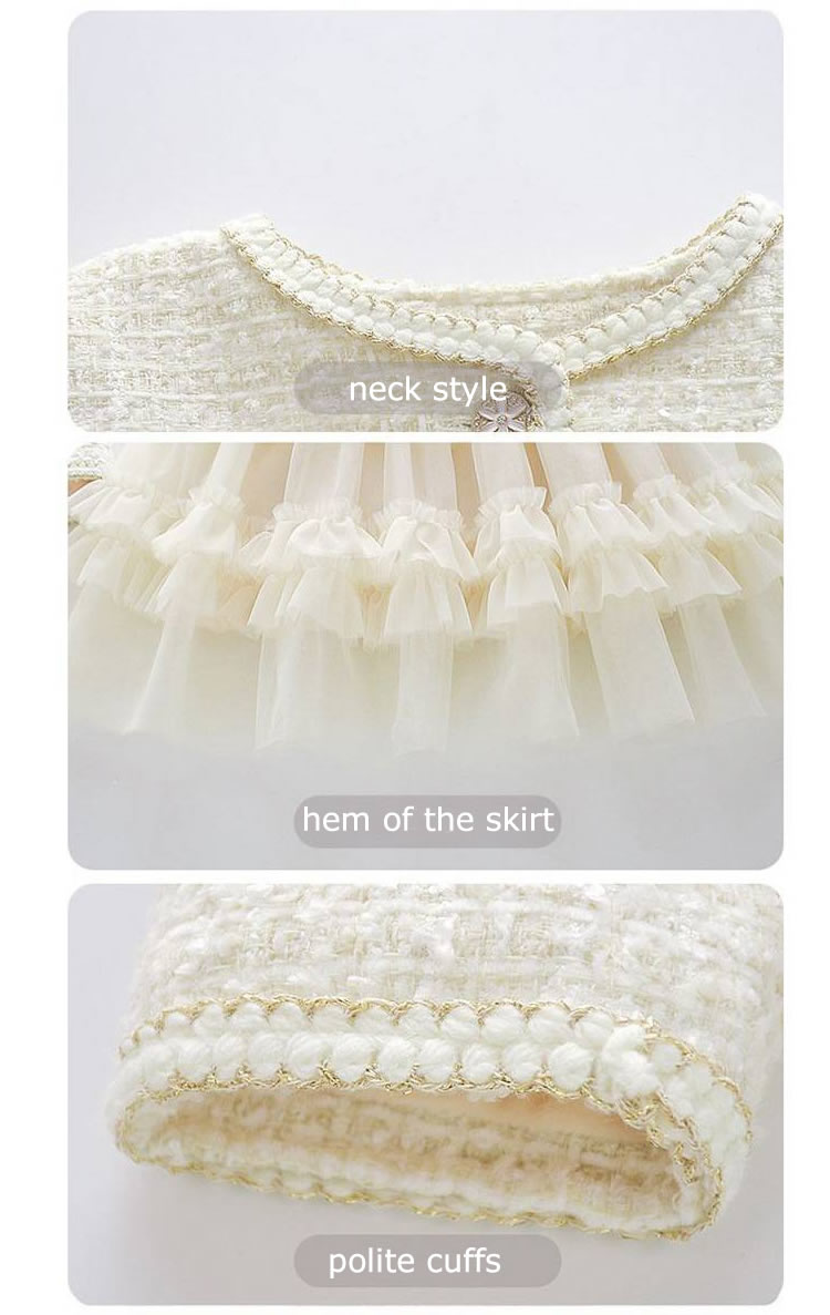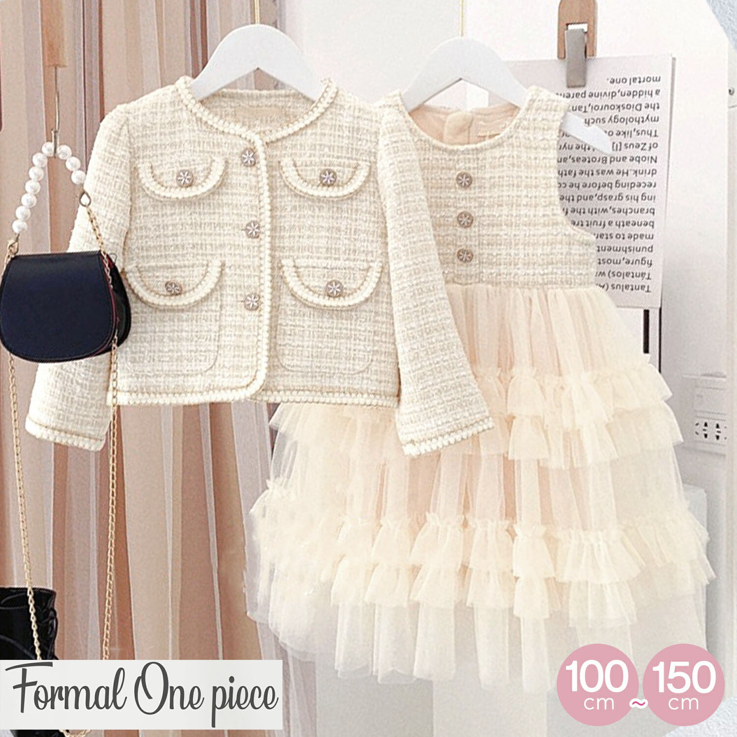 ワンピースは高級感のあるしっかりとしたツイード生地なので