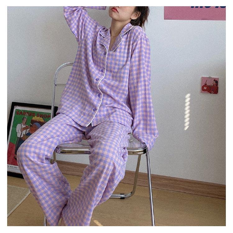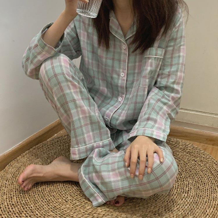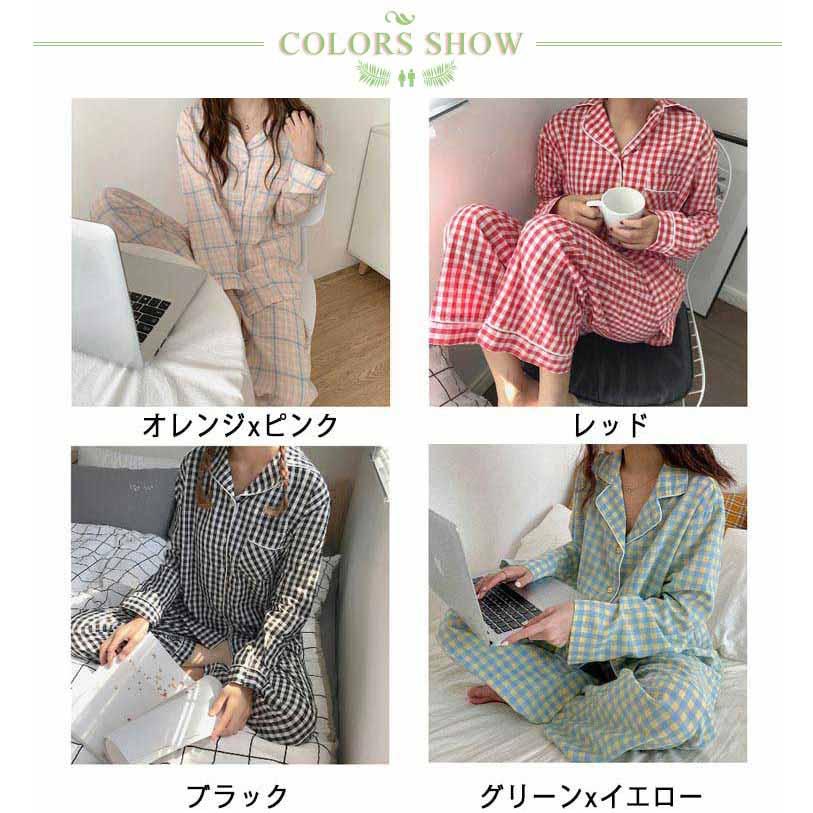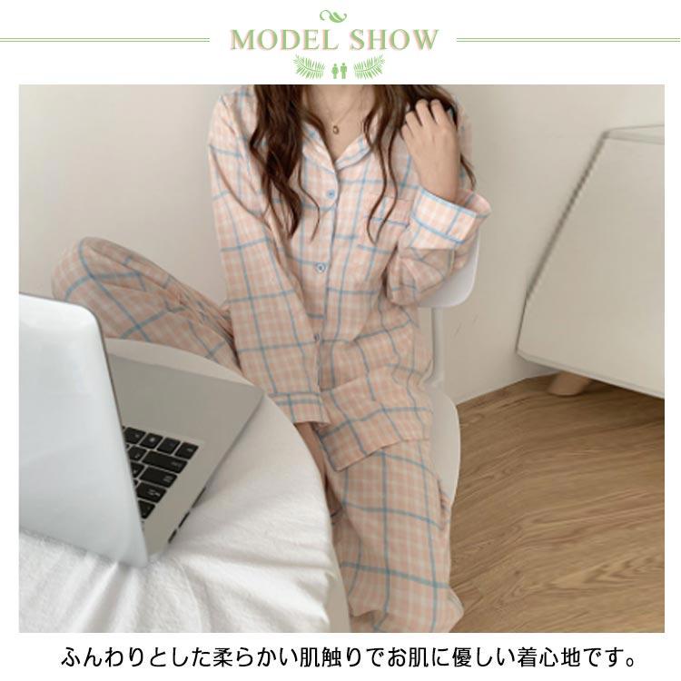 パジャマ レディース 長袖 前開き 春 秋 テーラー襟 チェック かわいい 新生活 可愛い 春 大きい 入院 産後介護 シャツパジャマ ルームウェア