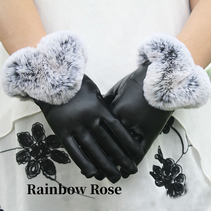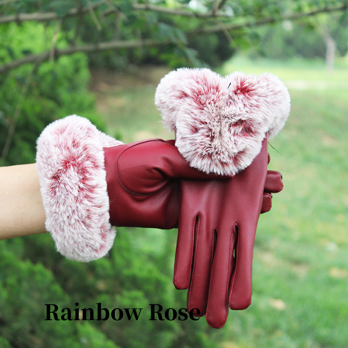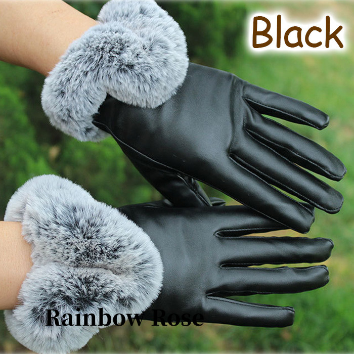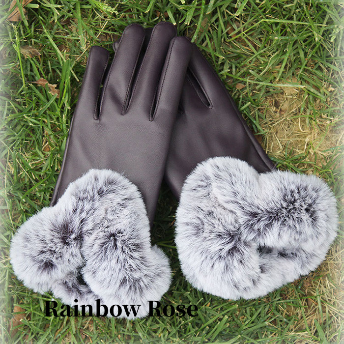 リストファー付きレザー手ぶくろ 手袋 てぶくろ レディース フェイクファー ふわふわ 大人 合皮 オシャレ おしゃれ レザー エレ上品