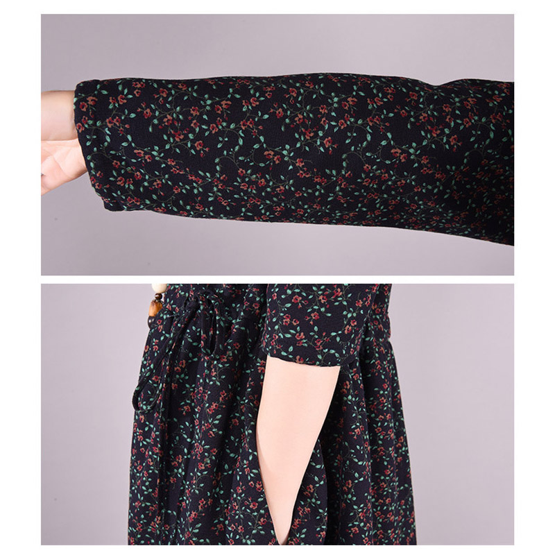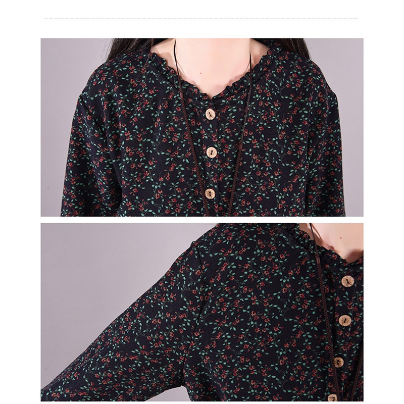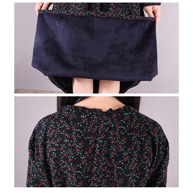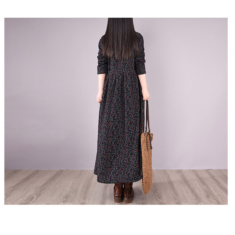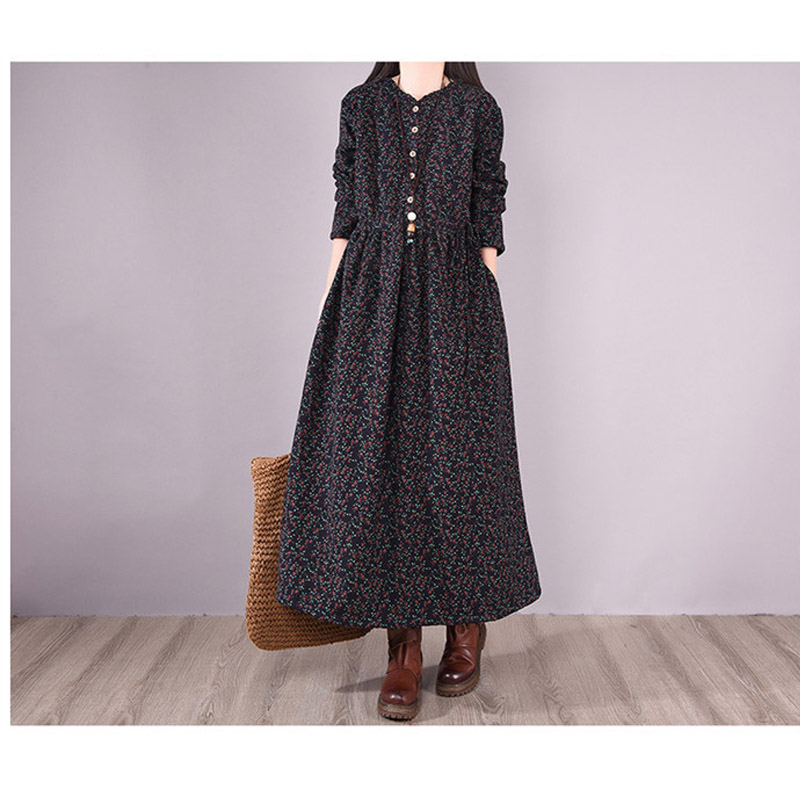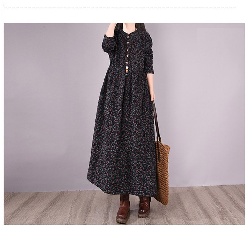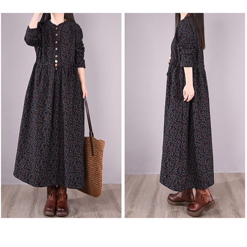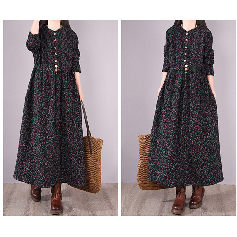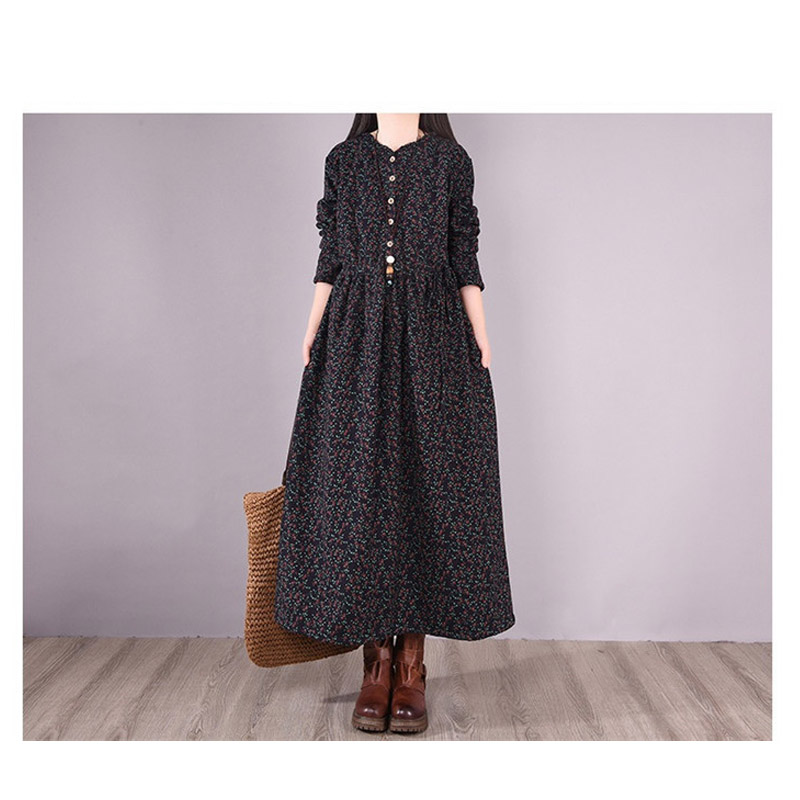 ワンピース レディース カジュアル 秋冬 フォーマル コーデきれいめ 体型カバー ゆったり着痩せ コットン 花柄 ロング丈 ワンピース 総柄 長袖 裏起毛 マキシ