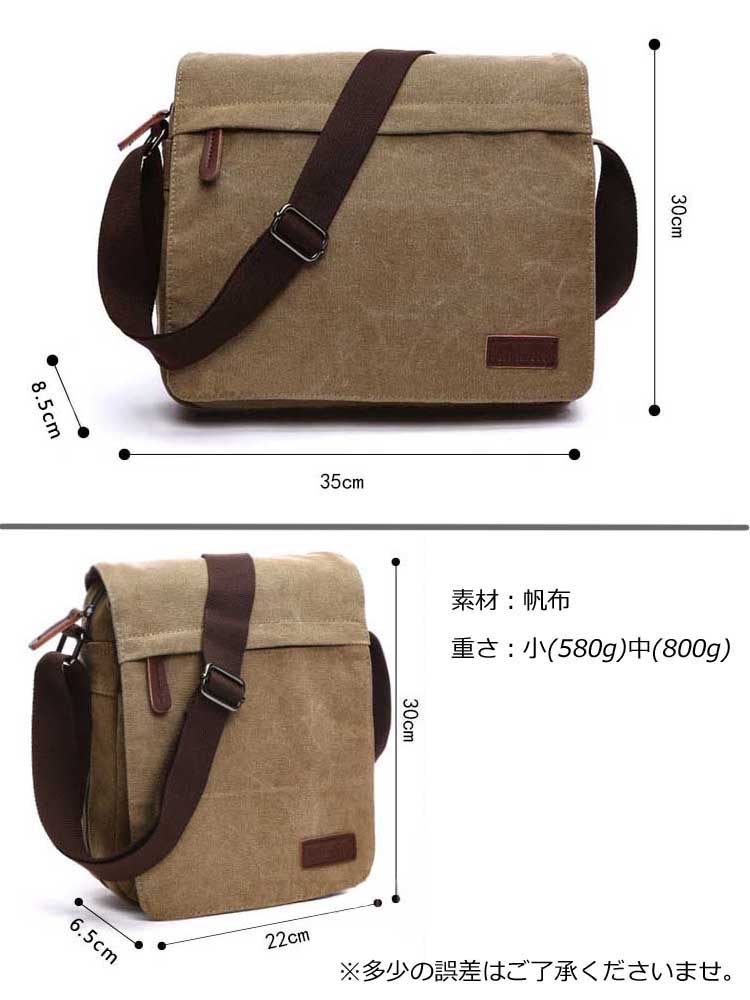 ショルダーバッグ メンズ 帆布 キャン斜め掛け 軽い 大人 収納抜群 通学 大きいサイズ 旅行出張 整理整頓 普段使いに最適 大