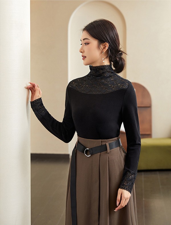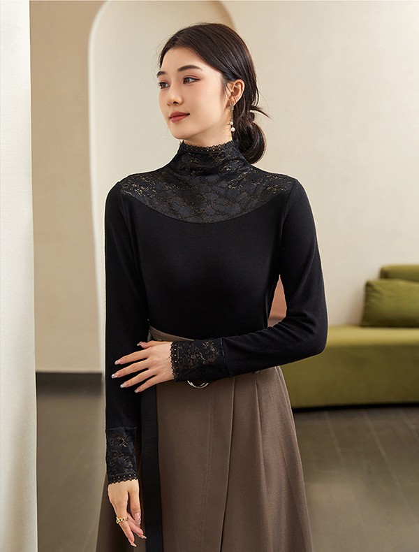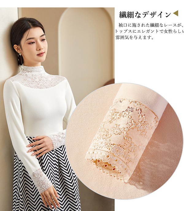 レース トップス レース ブラウス 総レース インナー 長袖 立ち襟 シースルー トップスハイネック 無地 レディース 韓国 ファッション 透け感 伸縮性あり 着回し 着やすい 柔らかい 重ね着 きれい 優しい ブラック黒 ベージュ L9D7