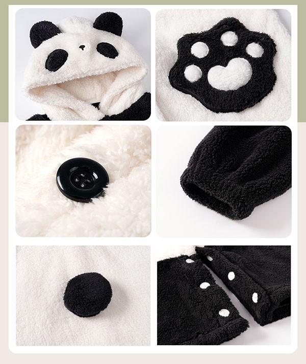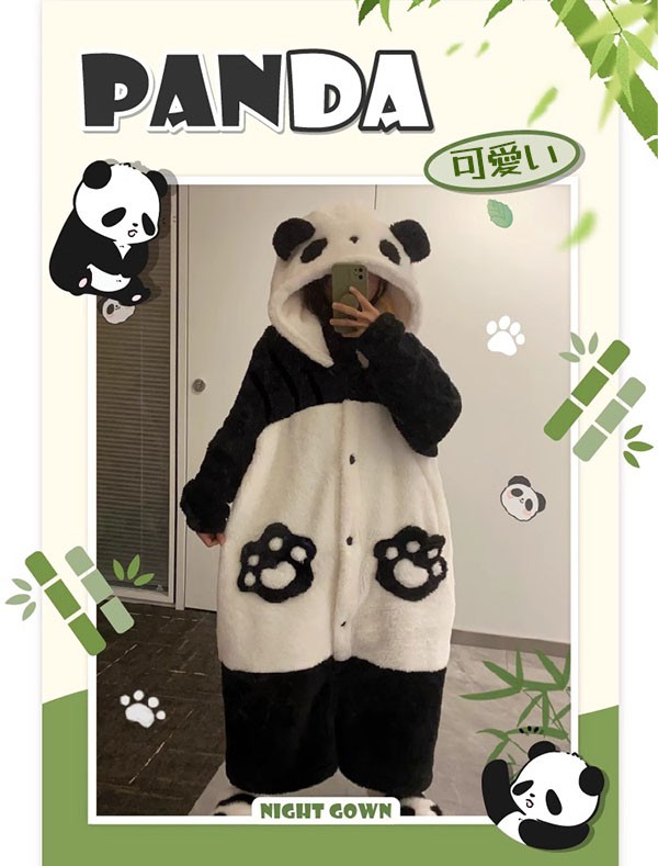 パンダ ルームウェア もこもこ パジャマ 冬 長袖 ナイトガウン 着る毛布 大きいサイズ 前開き フード付き 寝巻き 部屋着 暖かい あったか 。 モコモコ 大人用 ふわふわ 動物 レディース 女性用 ガウン かわいい 可愛い ギフト プレゼント T2M3
