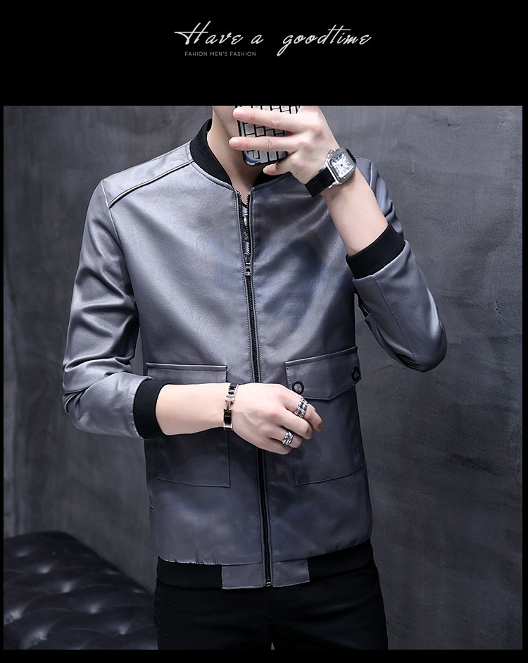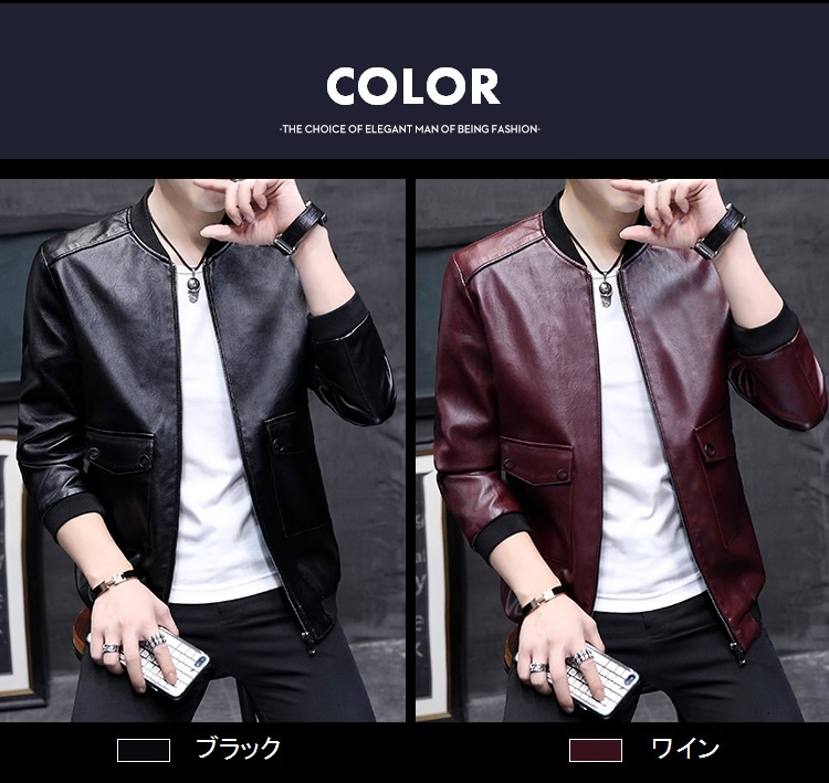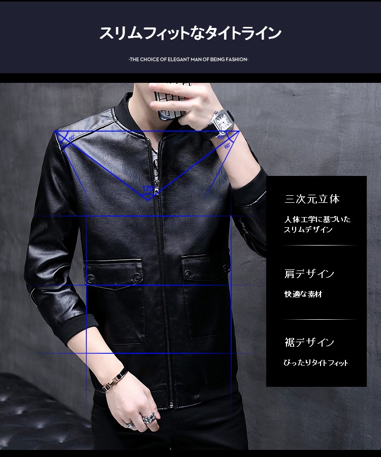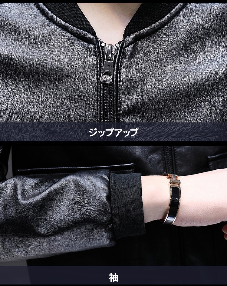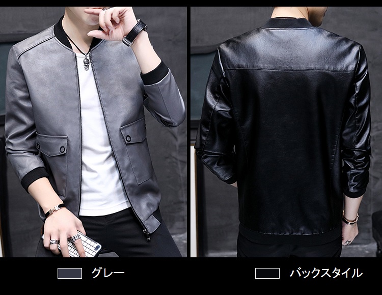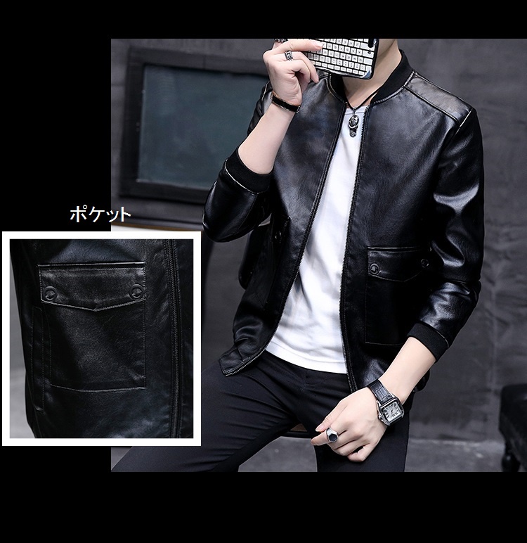 スタイリッシュポケットPUブルゾン フェイクレザー PU ジャケット メンズ アウター 合成皮革 合皮