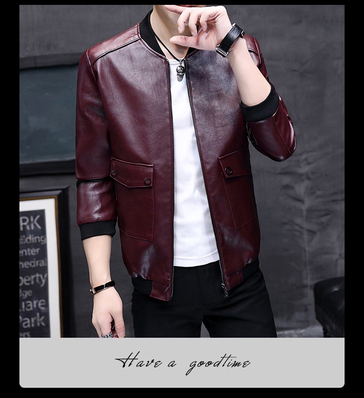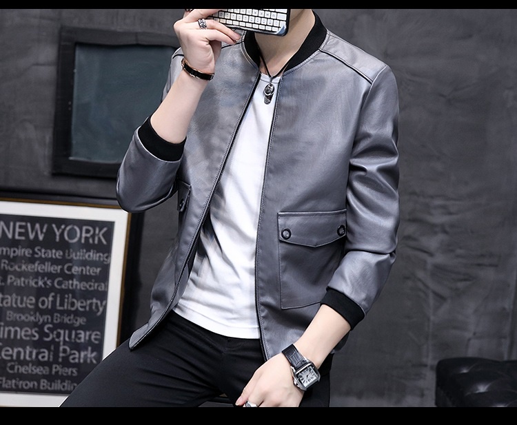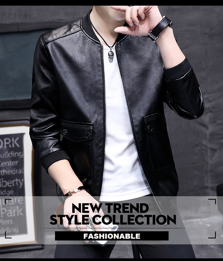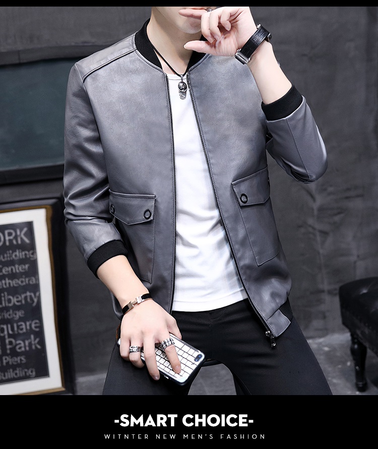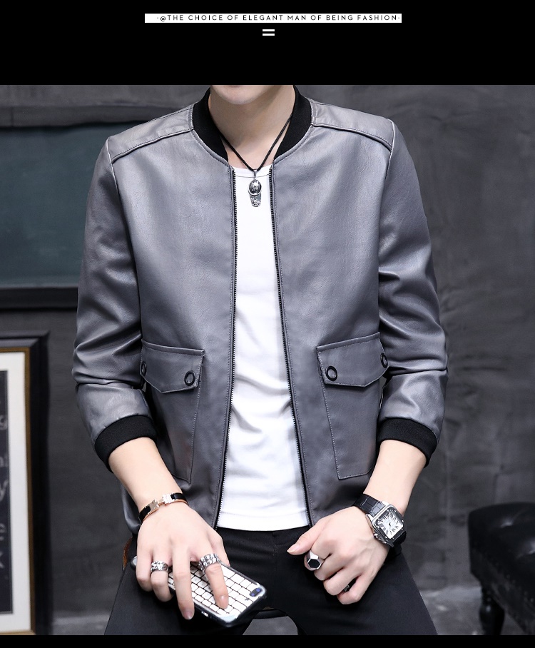 スタイリッシュポケットPUブルゾン フェイクレザー PU ジャケット メンズ アウター 合成皮革 合皮