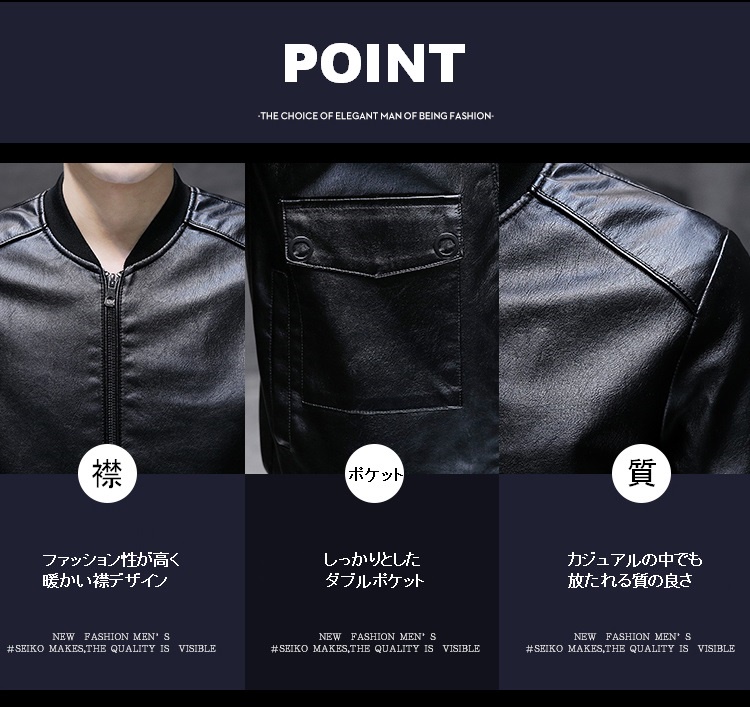 ■商品名: スタイリッシュポケットPUブルゾン フェイクレザー PU ジャケット メンズ アウター 合成皮革 合皮