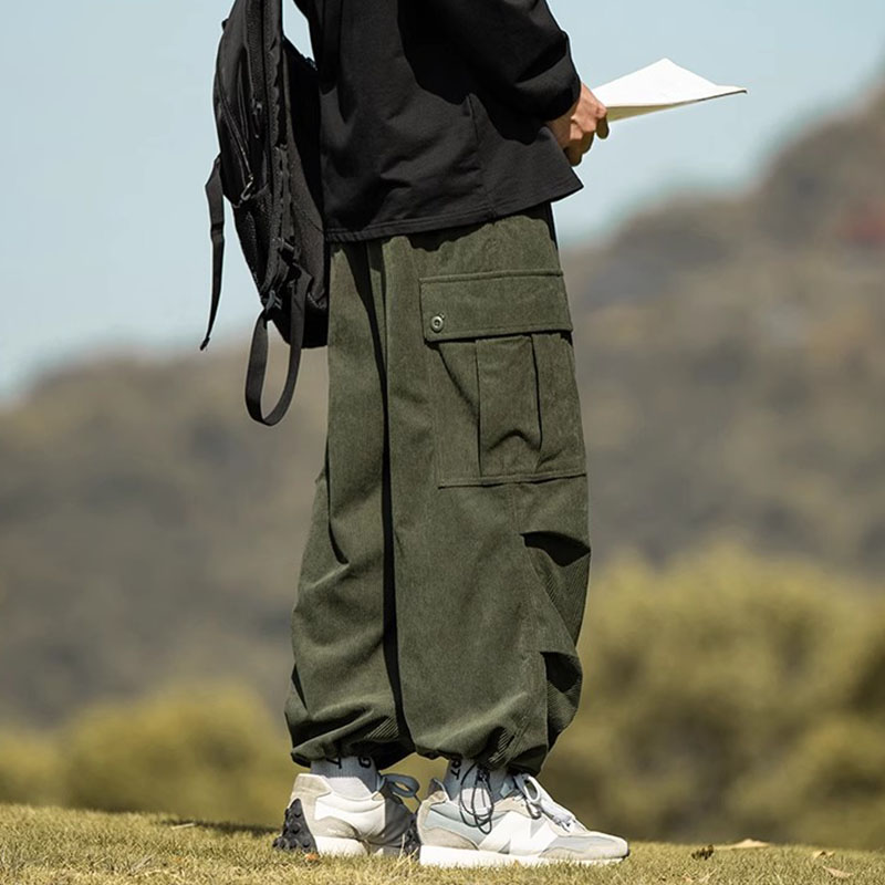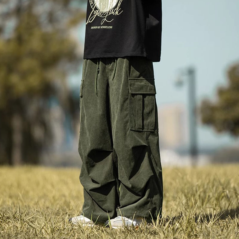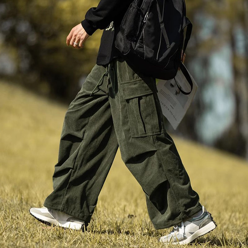 [ゆったりカーゴパンツ] ゆったりしたデザインなので、窮屈感が全然なくて、動きやすく、シルエットラインがカジュアルなワイドパンツ雰囲気を演出します。カーキ、グリーン、ブラックの定番カラーを肌馴染みよく美しく見えるように厳選します。