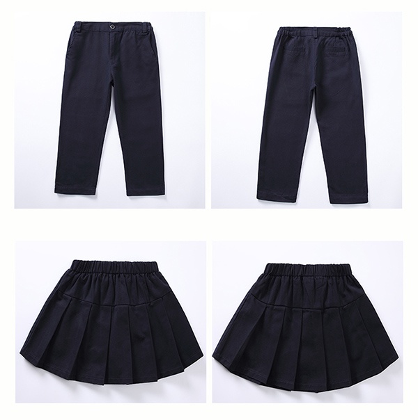 女の子:カーディガン シャツ スカート 蝶ネクタイ バッジ
