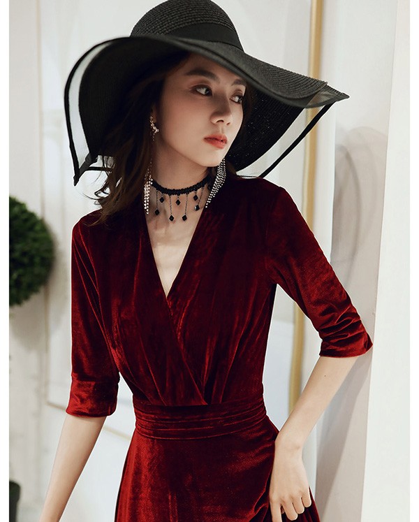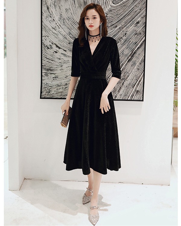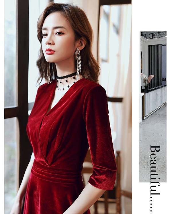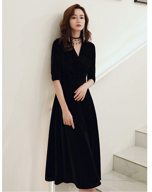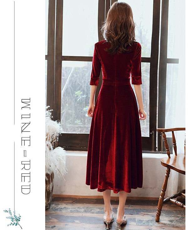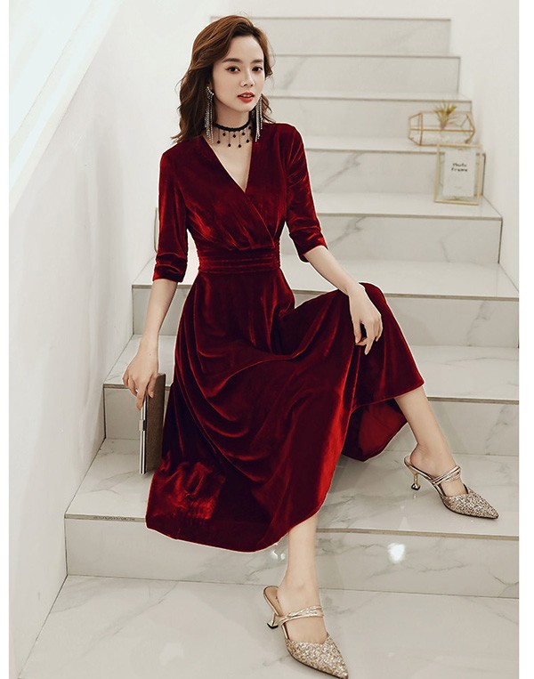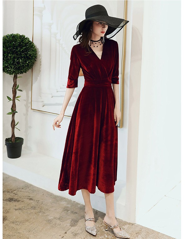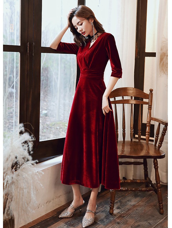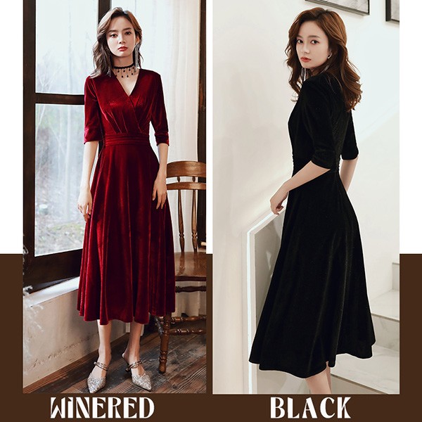 パーティードレス ミモレ丈 結婚式 ワンピース 結婚式ドレス 袖あり 母親 ドレス Vネック お呼ばれ ドレス 大きいサイズ 大人 上品 お呼ばれ 二次会 披露宴 黒 赤 小さいサイズ XXS XS S 大きいサイズ4L S1D7