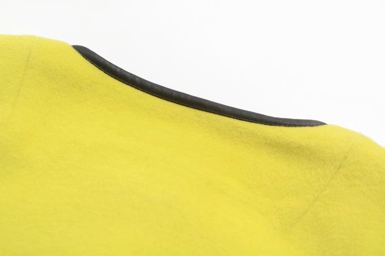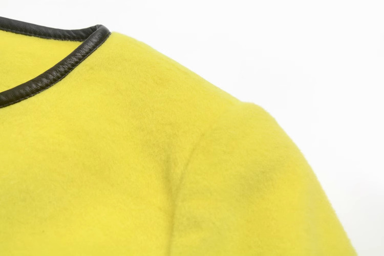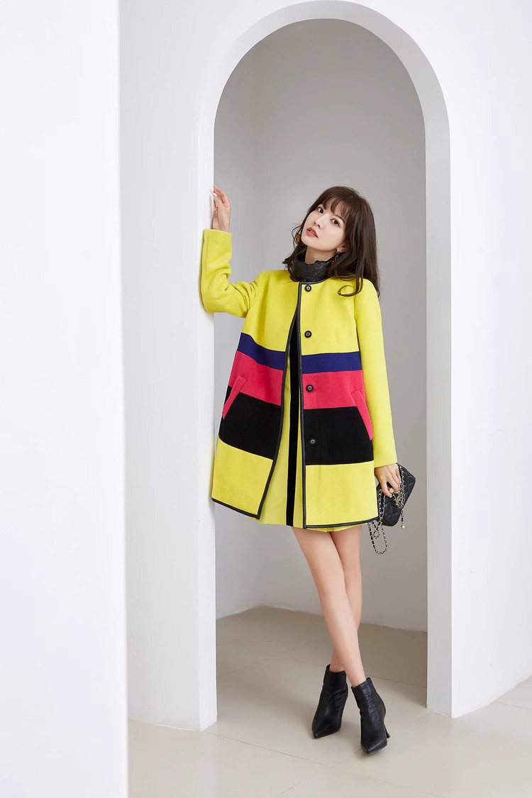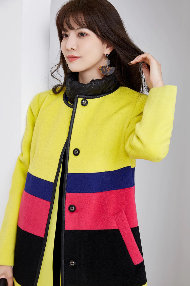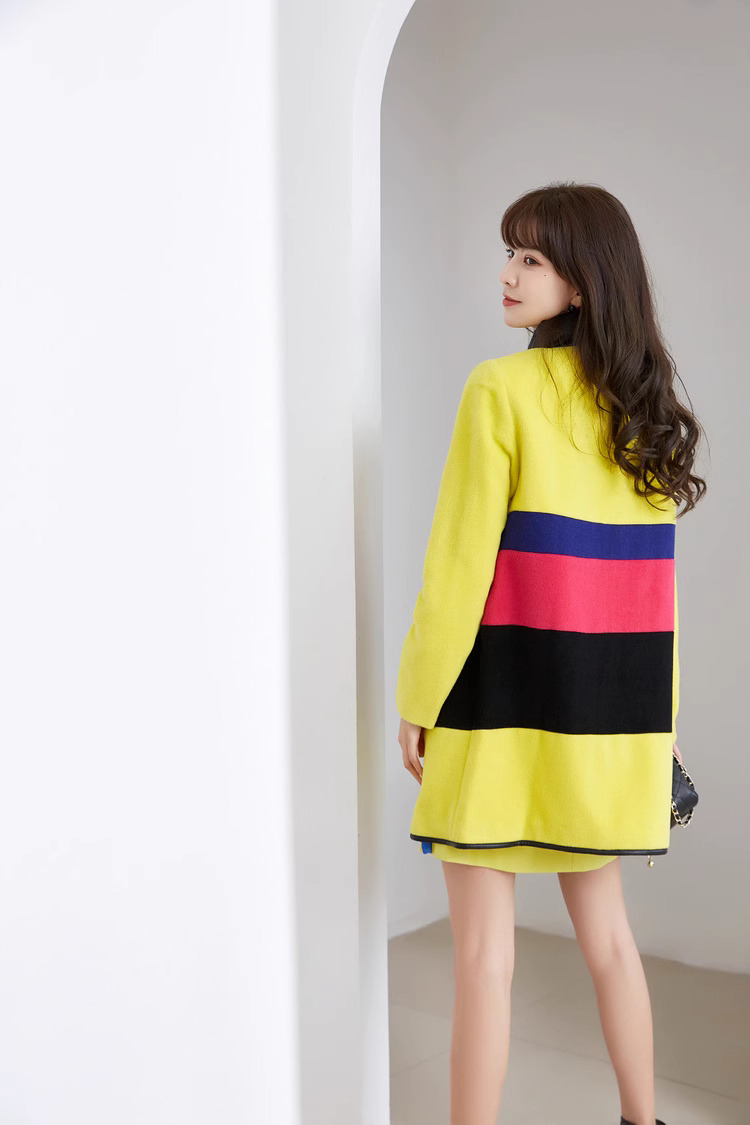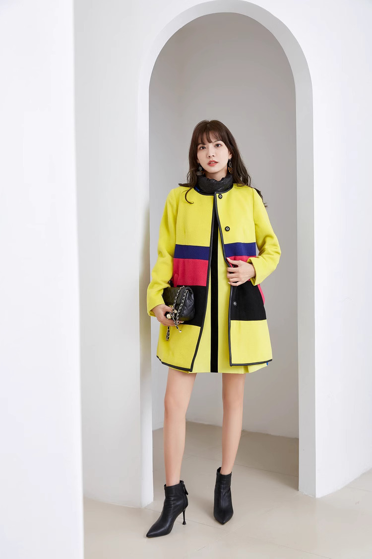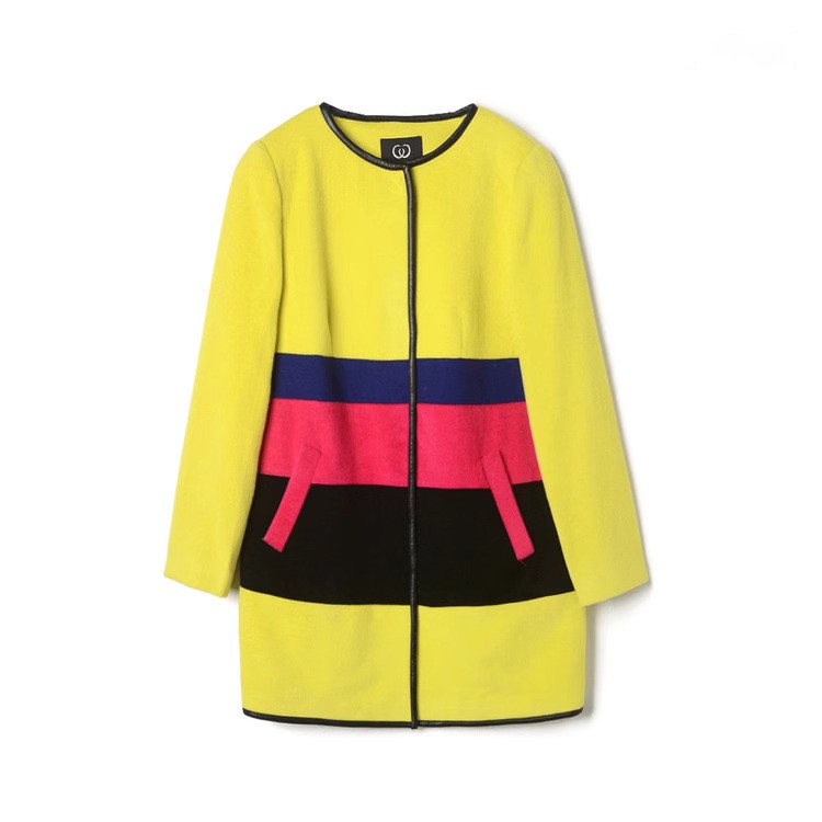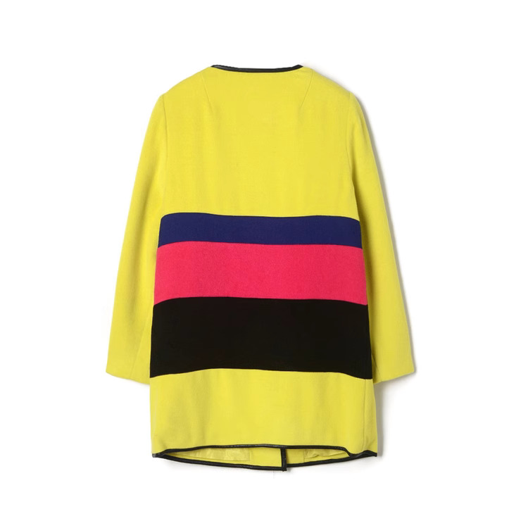 ノーカラーコート レディース 冬 きれいめ アウター レディース ロングコート デザインコート ラウンドネック カジュアル 秋冬 韓国 ミドル 丈 コート レディース アウター レディース 冬 個性的 配色 黄色 イエロー おしゃれ 30代 40代