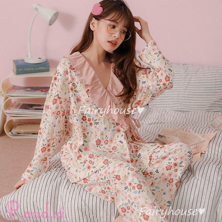 商品説明 :パジャマ ルームウェア レディース 綿 肌触りも良く花柄 パジャマ長袖 ロングパンツ ルームウェア 女性 可愛い 姫系 部屋着 寝巻き