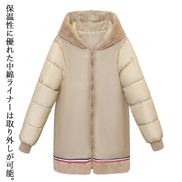 2WAYS 中綿コート レディース パーカーコート ウィンター ライナー取り外し ファー フード付き リムーバブル ライニング ジャンパー 厚手 サーマル ジャケット 綿入り ファーコート 防寒 暖かい 寒さ対策 オーバー おしゃれ 通勤 無地 アウターコート 冬服 おおきいサイズZBM3