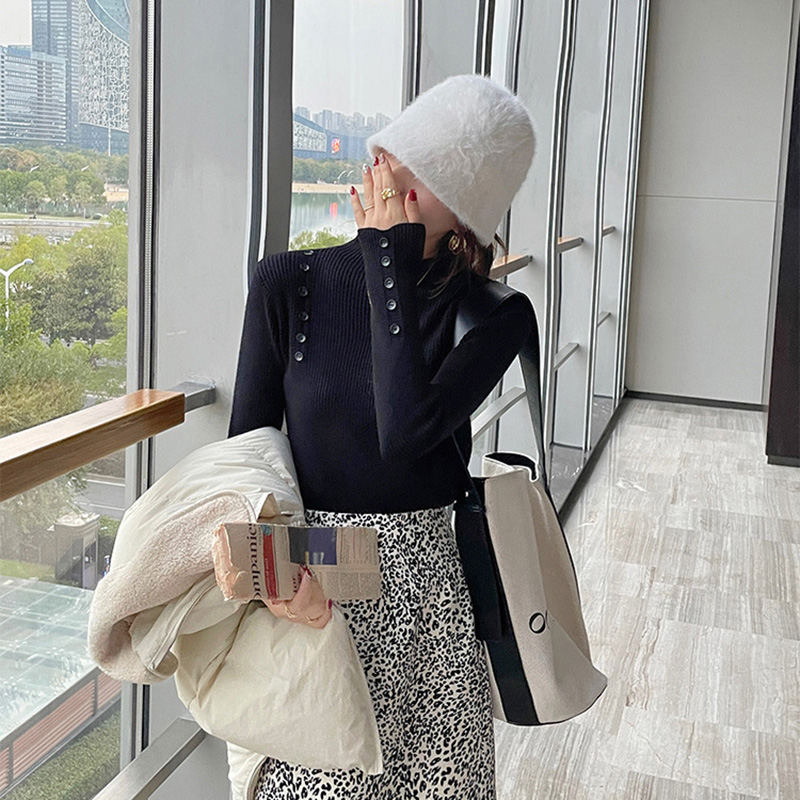セーターボトリングシャツ女性のための秋冬 2023 新しいスタイル外国スタイルのインナー層厚いハイエンドニットハーフタートルネックホワイトトップ