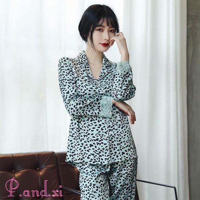 ルームウェア 長袖 レディース 上下セット パジャマ 前開き 2点セット ヒョウ柄 セットアップ 部屋着 上下 パンツ 着心地良い セックス ファッション ホームパジャマ シンプル おしゃれ 寝間着 春 夏 秋
