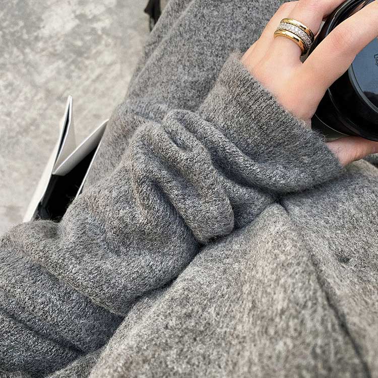 ドロップショルダーでゆったりフィットのルーズデザインのセーター素材。