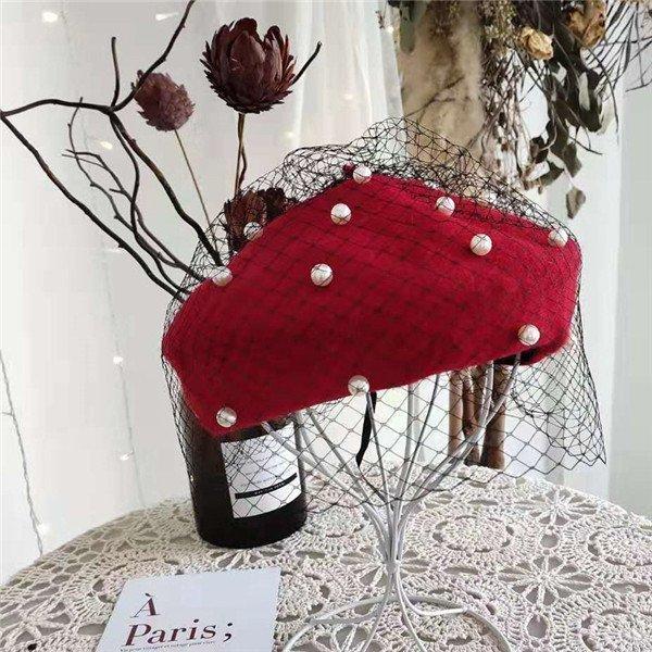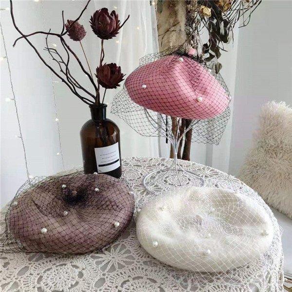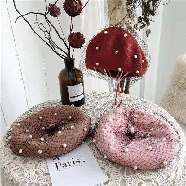 ベレー帽 帽子 パールベレー帽 パール付き ベレー レディース 春秋冬 レース きれいめ ビーズ おしゃれ ウール混 女性用 あったか