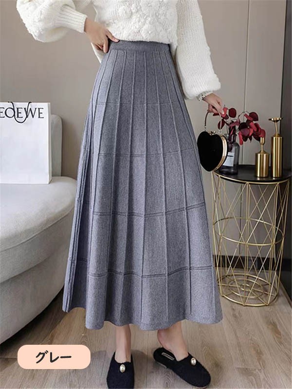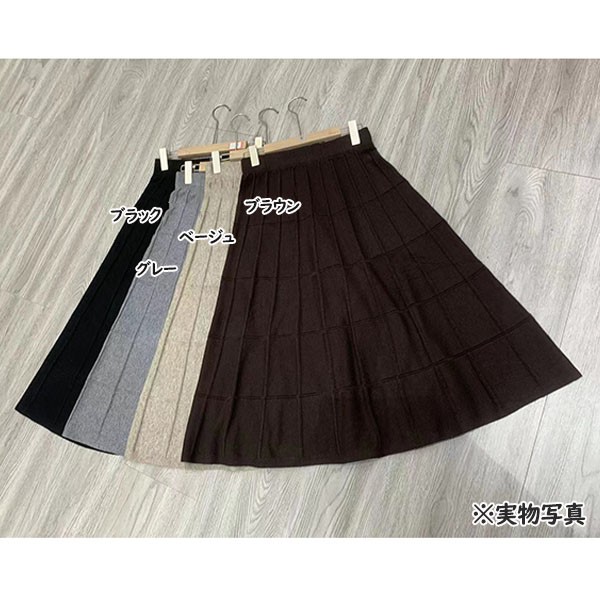 ニットスカート 秋冬 大人女子 レディース あったか ひざ下丈スカート ミモレ丈 プリーツ スウェートチェック柄 格子 ブラック 黒 グレー 灰色 ベージュ ブラウン X1D7