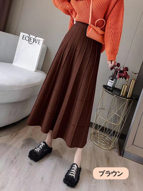 ニットスカート 秋冬 大人女子 レディース あったか ひざ下丈スカート スウェート