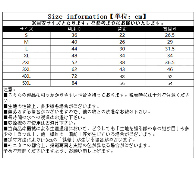 サイズ S M L XL 2XL 3XL 4XL 5XL