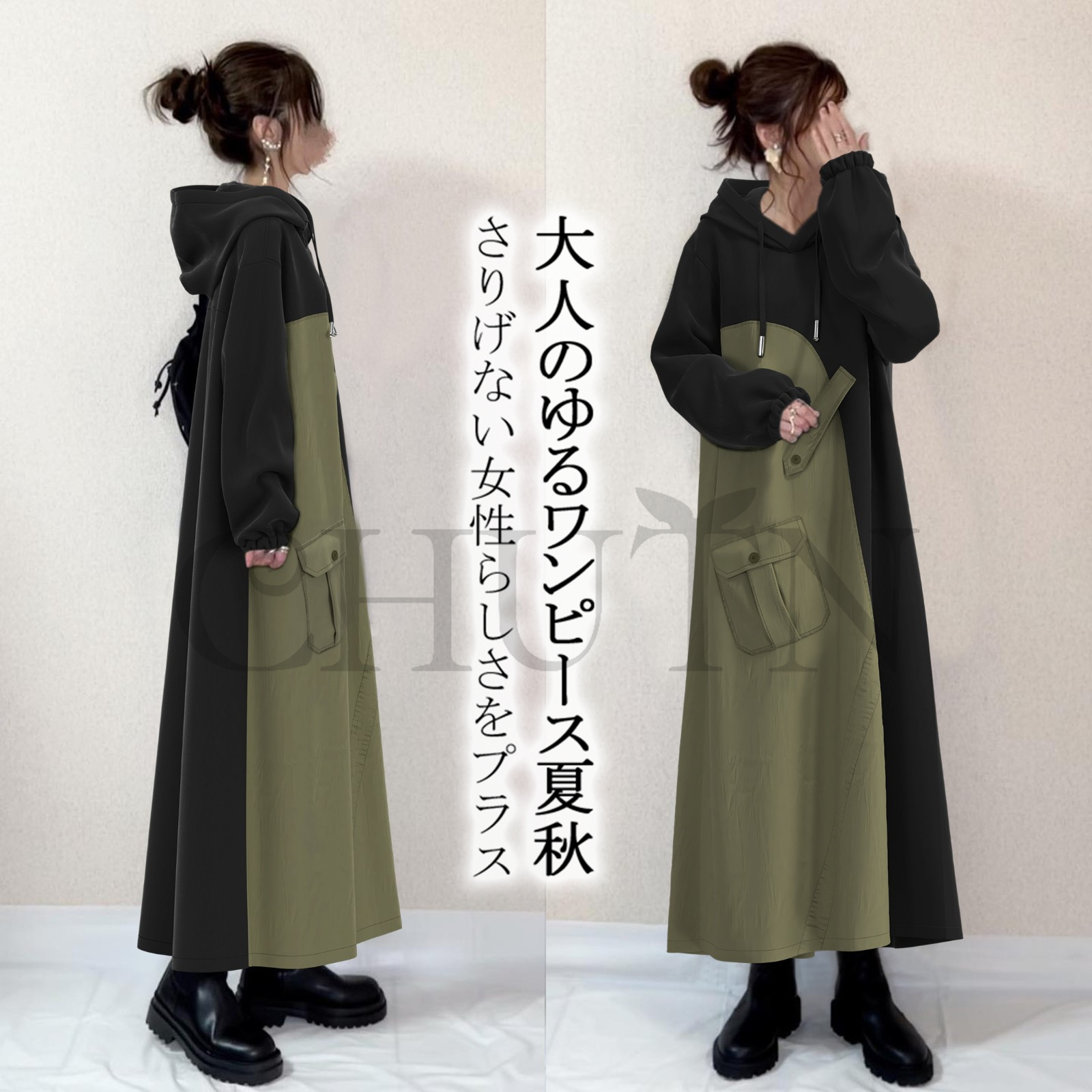 モデル着用画像では若干色味が異なる場合がございますので、下記のカラー画像をご参考になさって下さい。