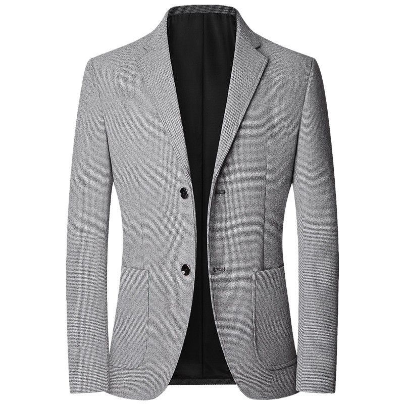 スリムなシルエットで、すっきりした印象を与えるメンズスーツジャケットは、