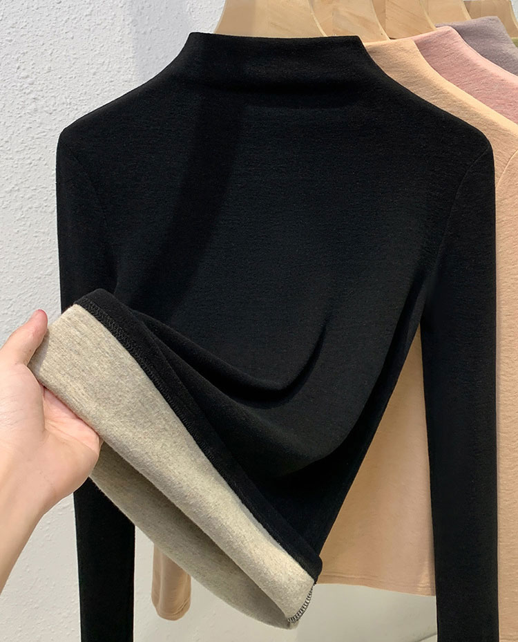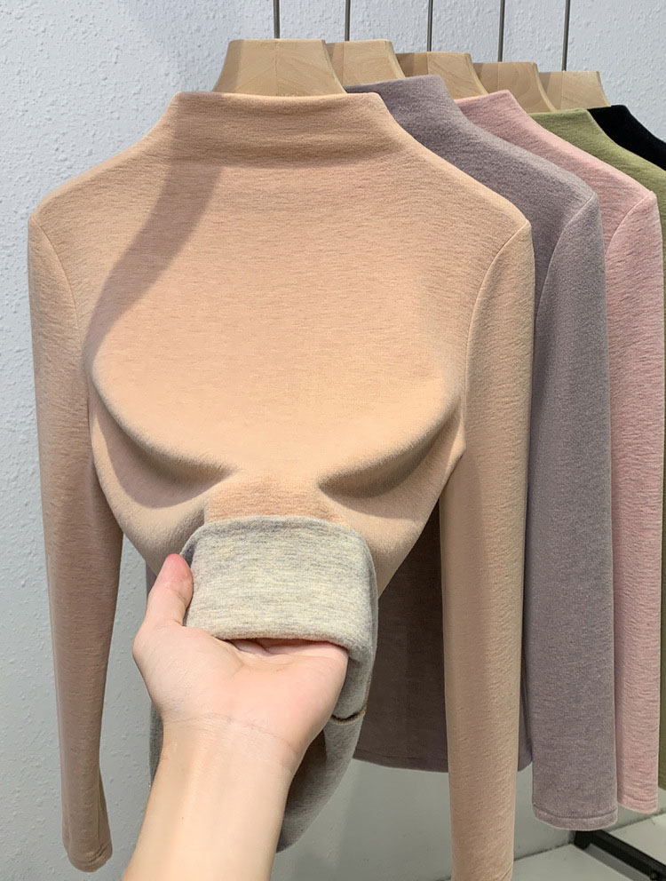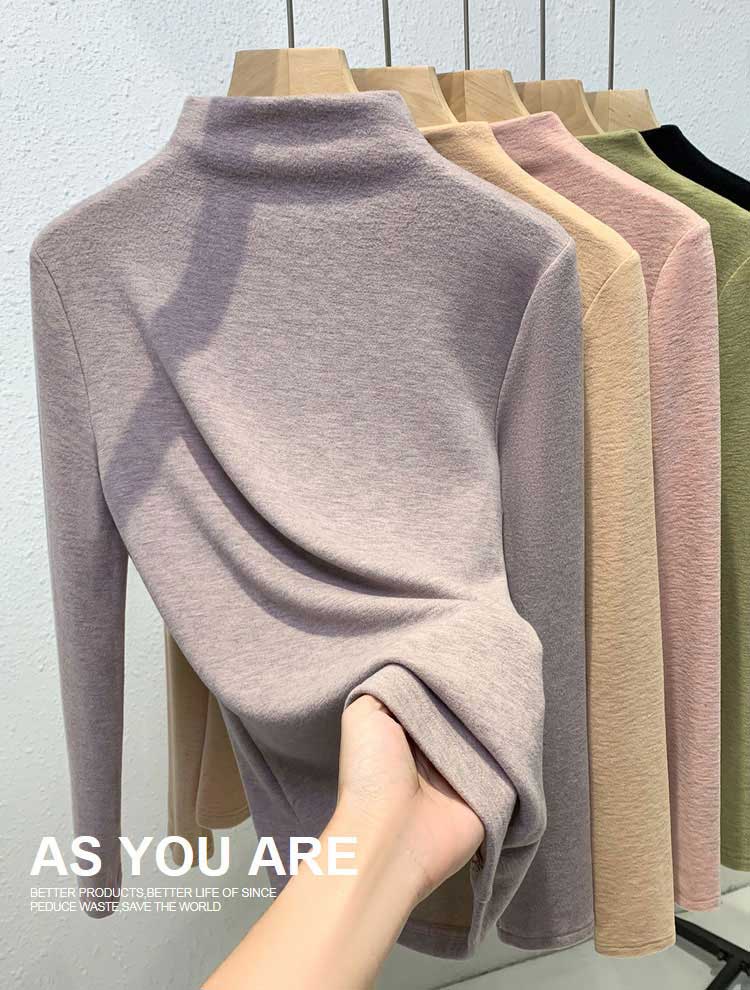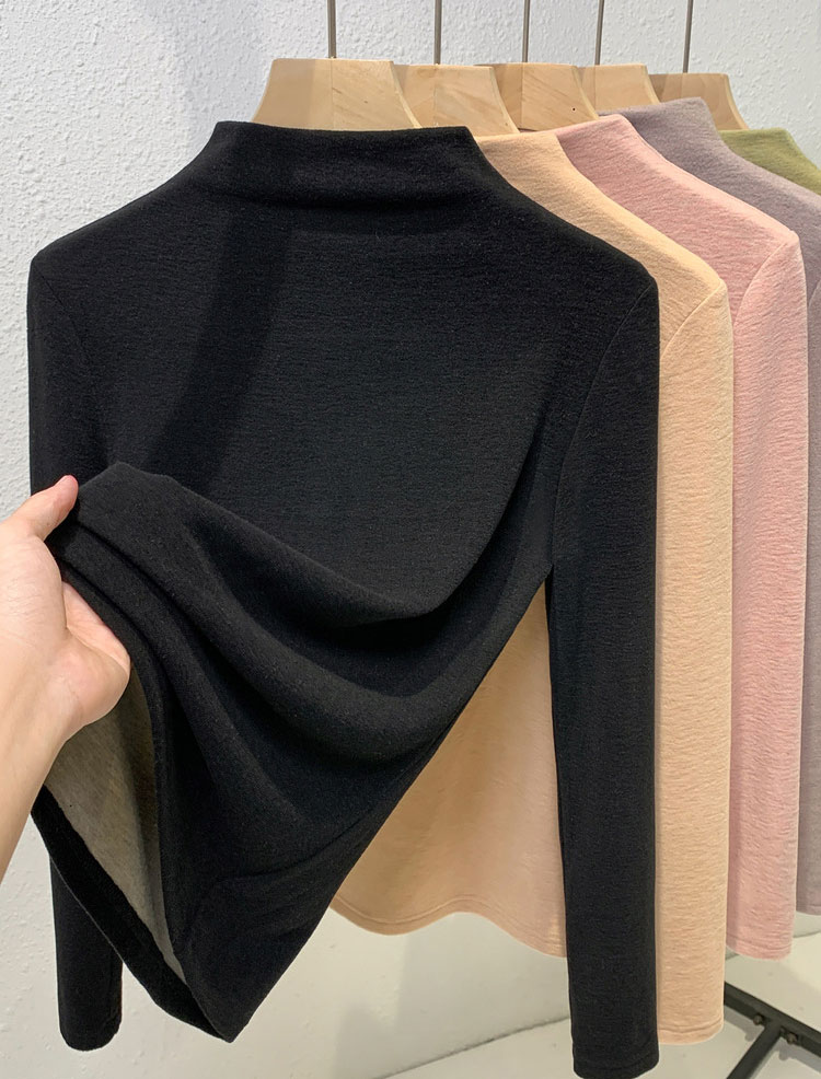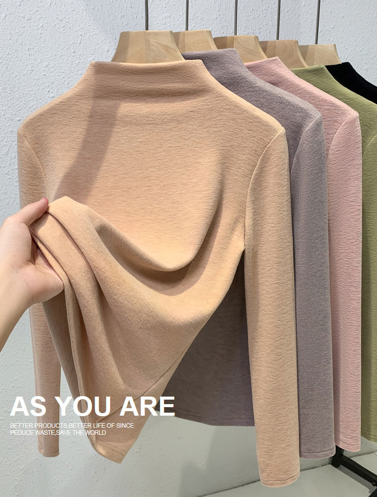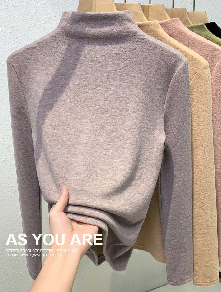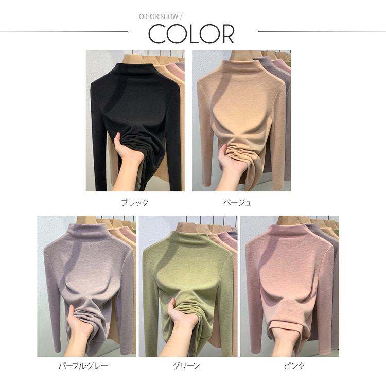 シンプルなモックネックデザインで、レイヤードコーデも◎