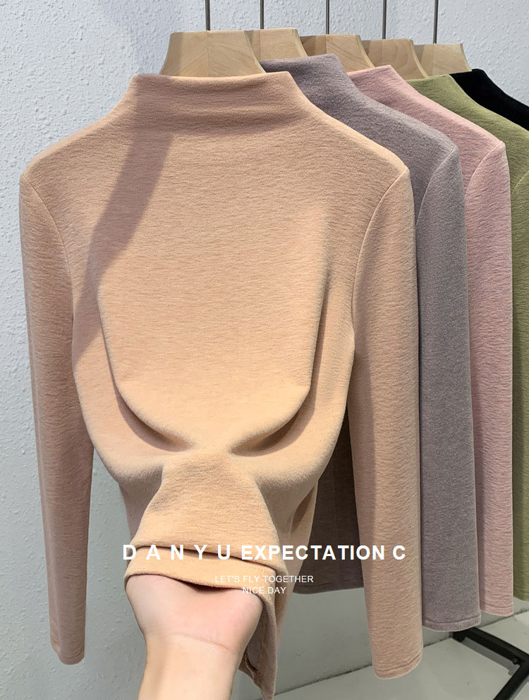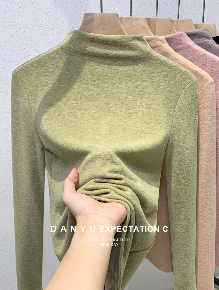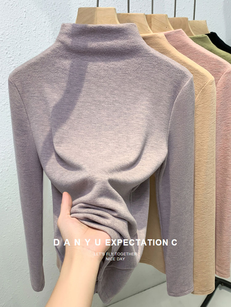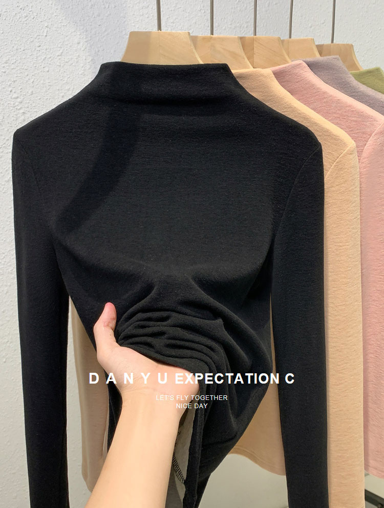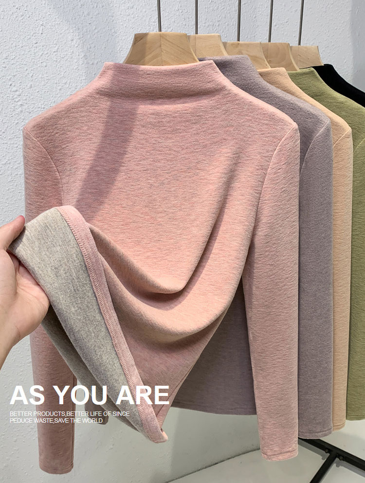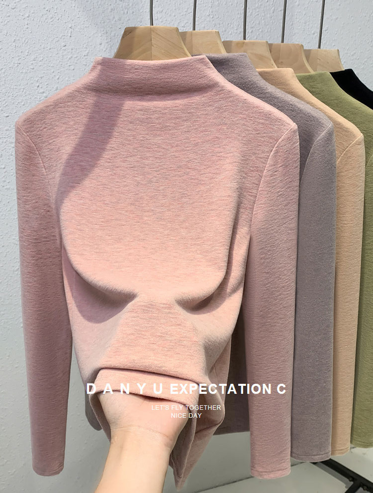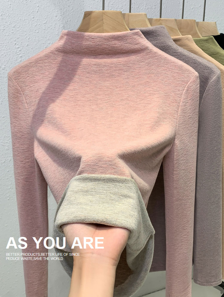 シンプルなモックネックデザインで、レイヤードコーデも◎