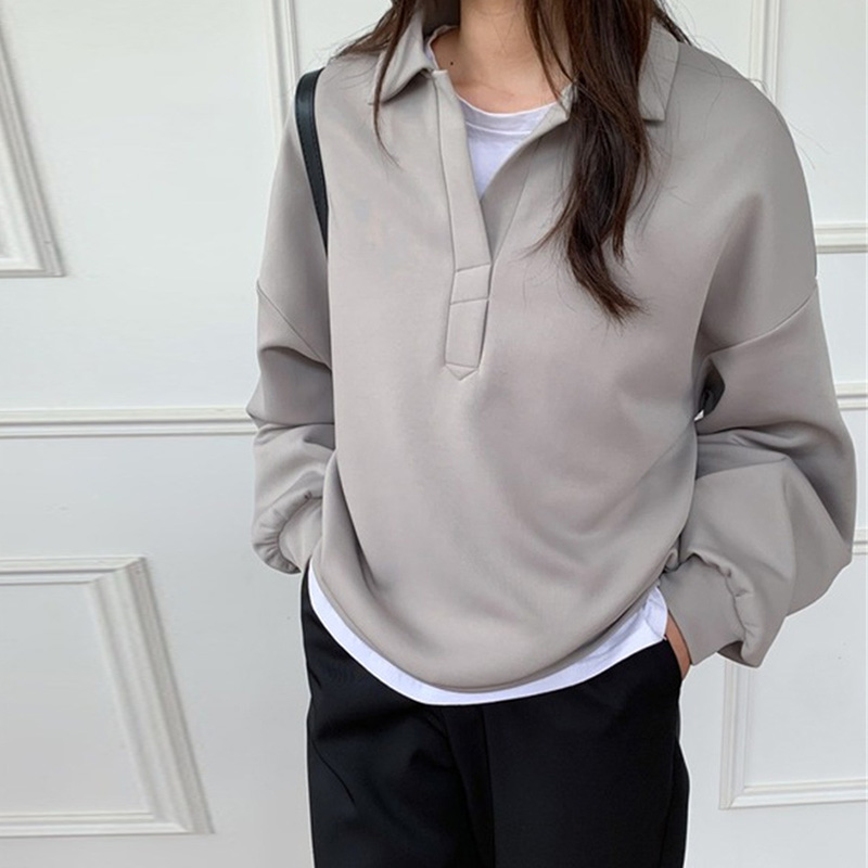 エアレイヤースウェットシャツ日本と韓国スタイルのカジュアルスペースコットンラペルトップ ゆったりとしたデザイン