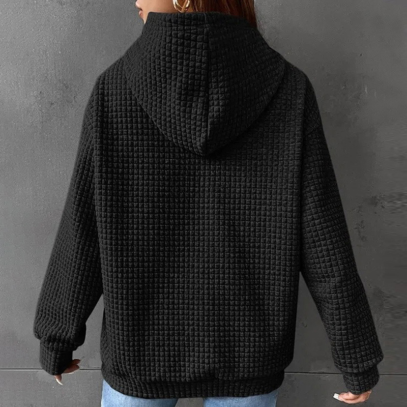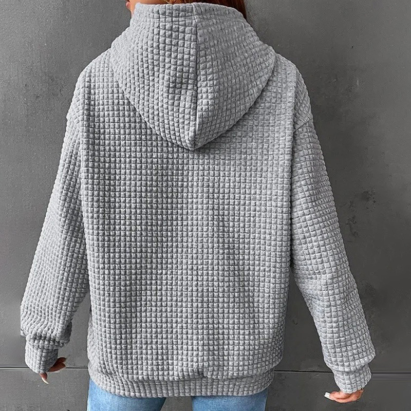 カジュアルでいて品の良い印象を与えるダンボールパーカープルオーバー。