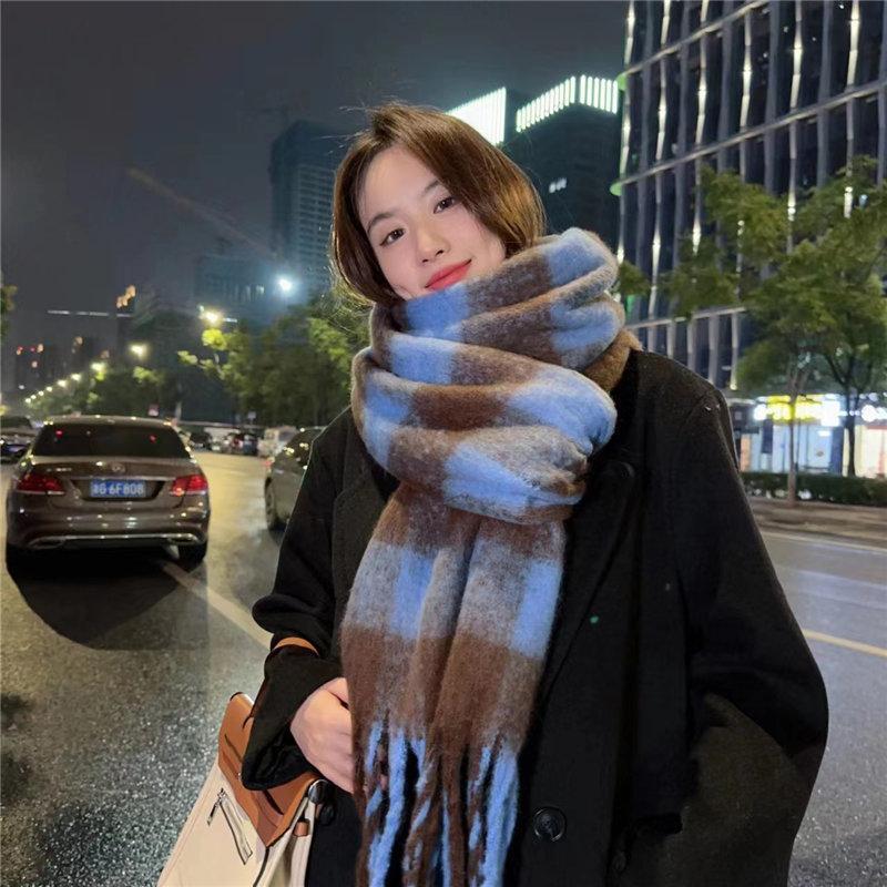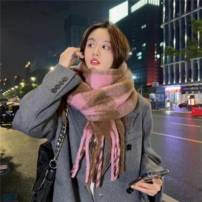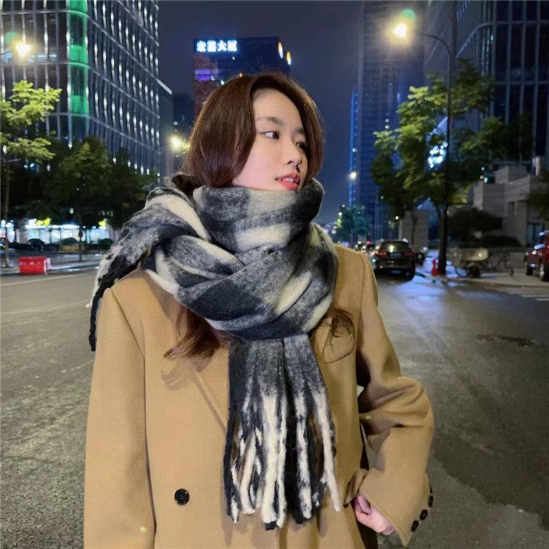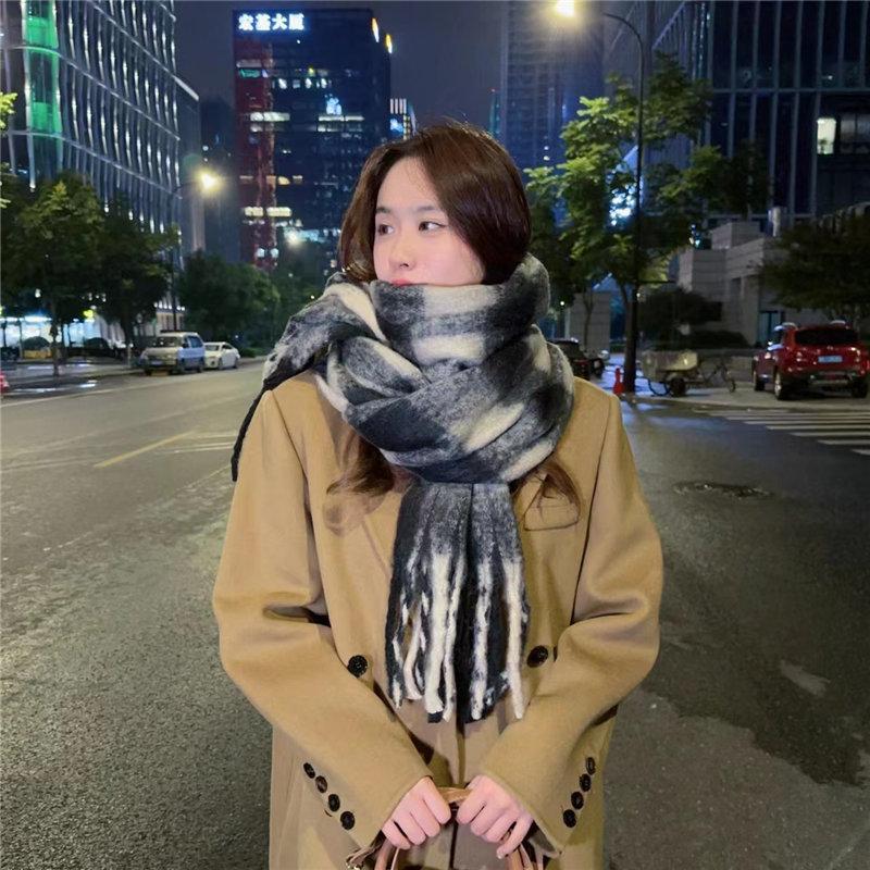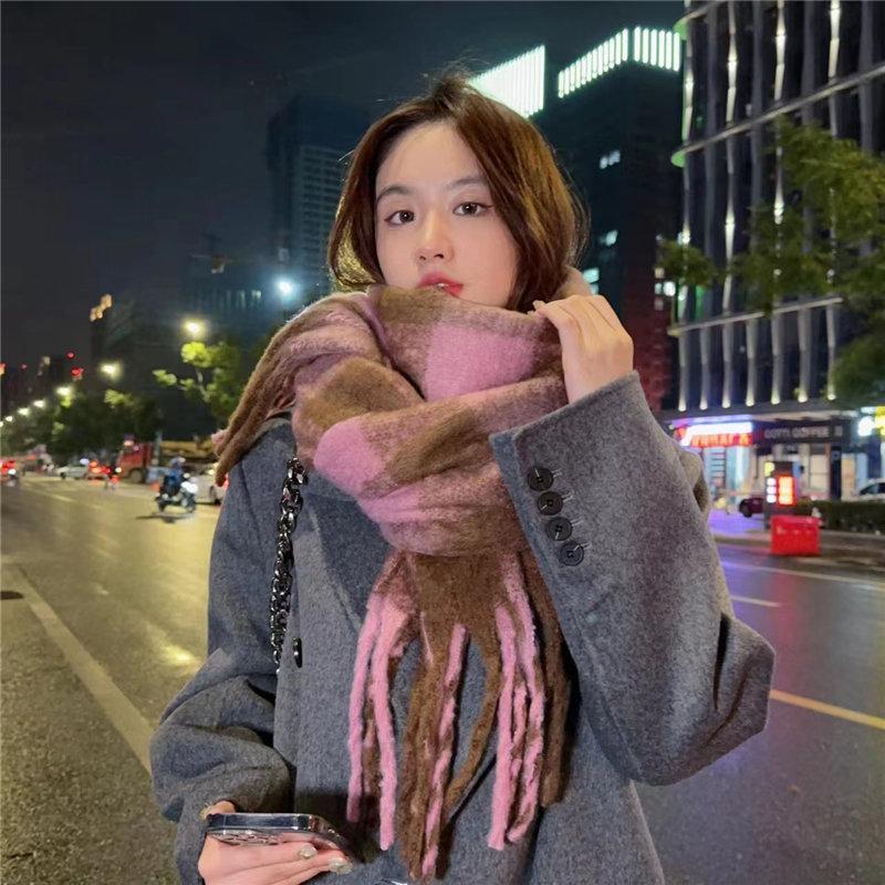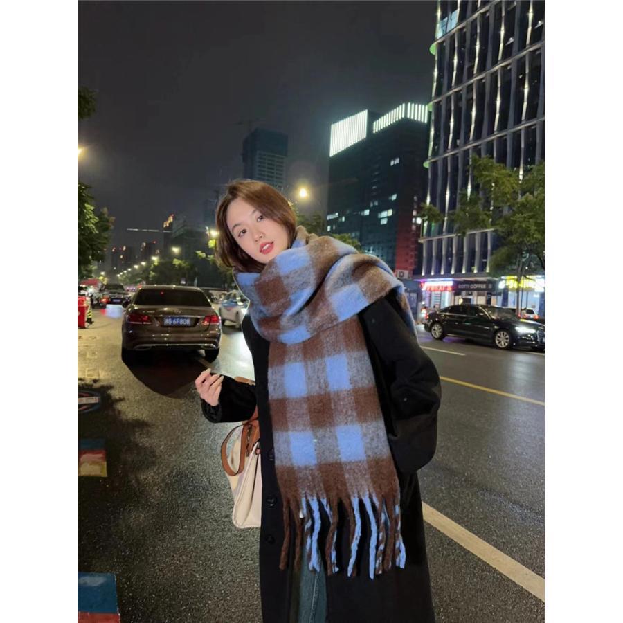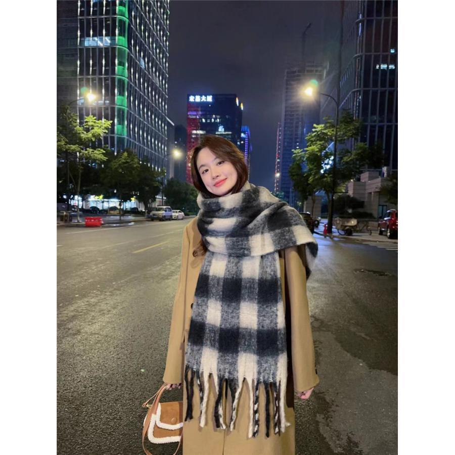 マフラー チェック ボリュームフリンジマフラー 暖かい レディース ストール 厚手 かわいい プレ