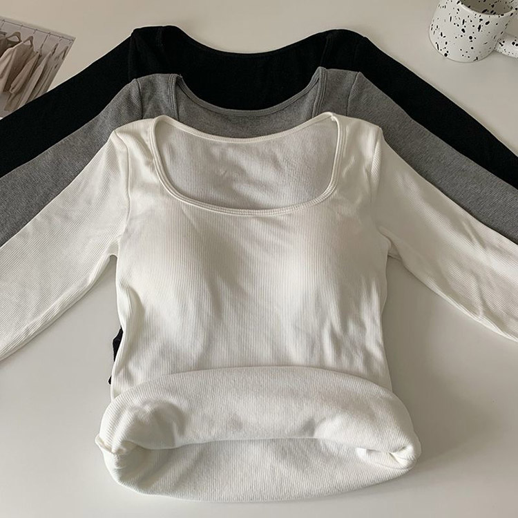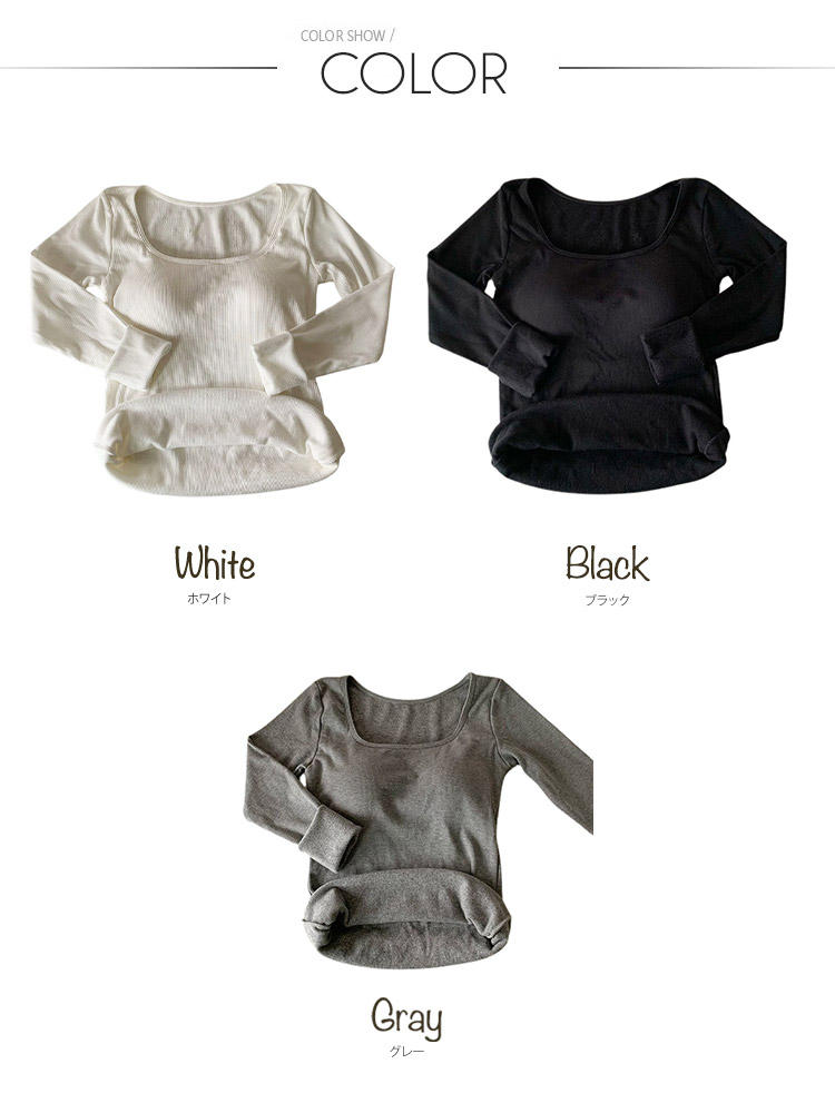 韓国デザインのバストパッド付スクエアネック長袖インナー。