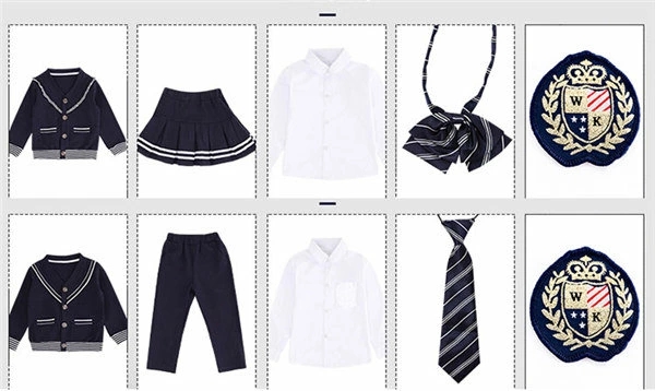 男の子「カーディガン シャツ ネクタイ ズボン」OR女の子「カーディガン シャツ スカート リボン」