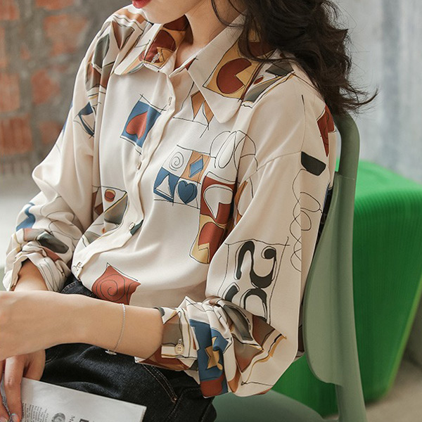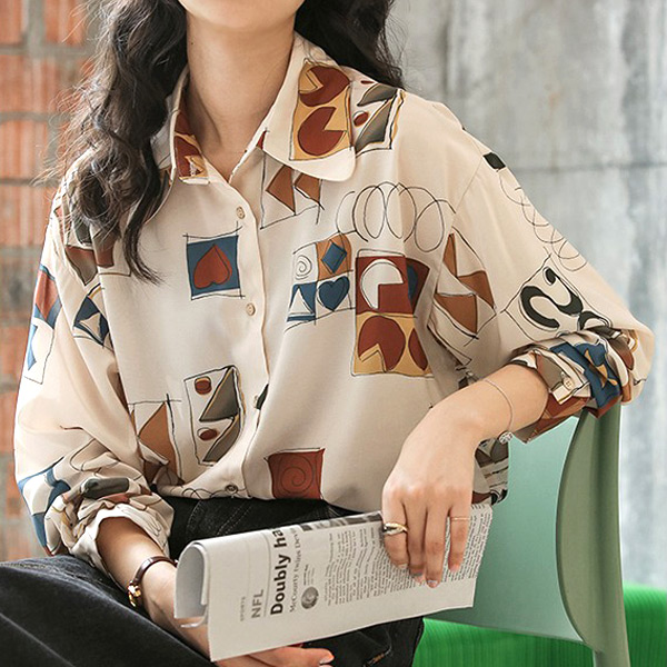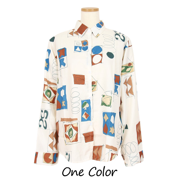 柄シャツ 幾何柄 アート 長袖シ
