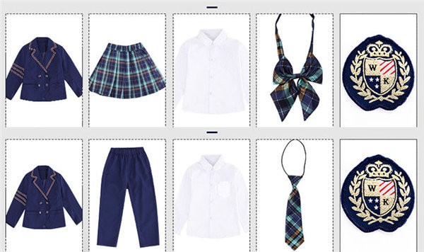 男の子「ジャケット シャツ ネクタイ ズボン」OR女の子「ジャケット シャツ スカート リボン」