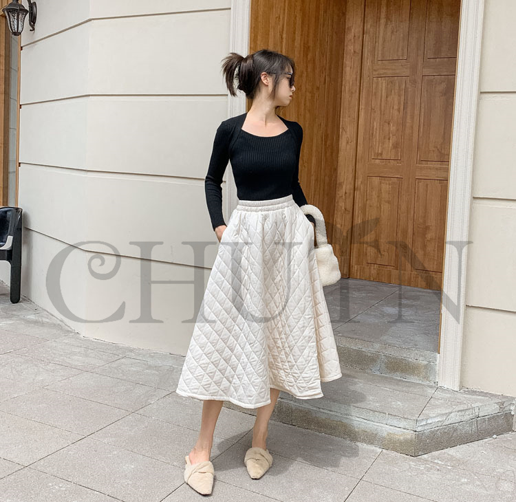 ダウンスカート中綿 スカートボミモレ丈 膝下 キルティングスカート 入学式卒業式フ