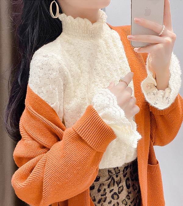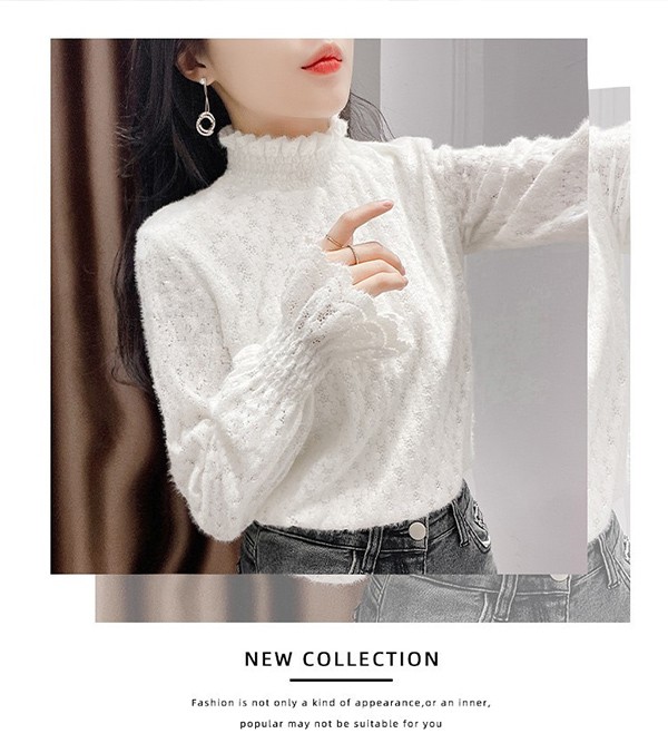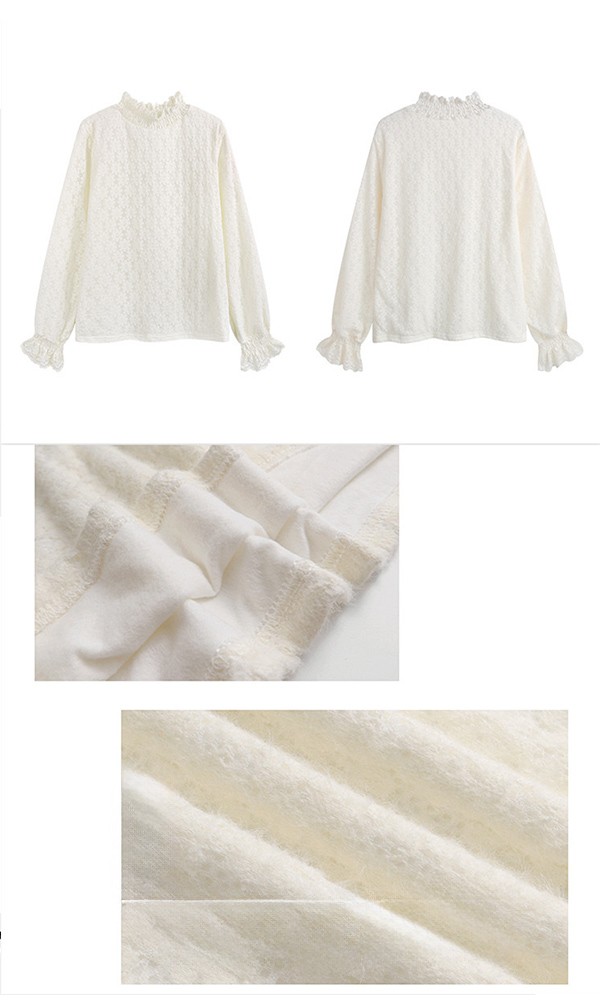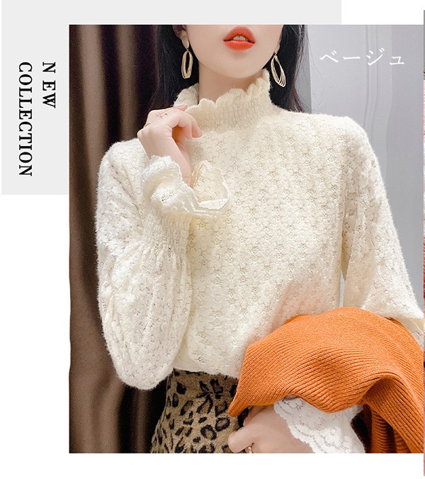 レース トップス レース ブラウス 総レース 裏起毛 トップス 立ち襟