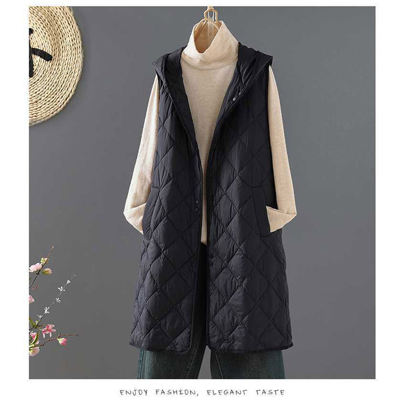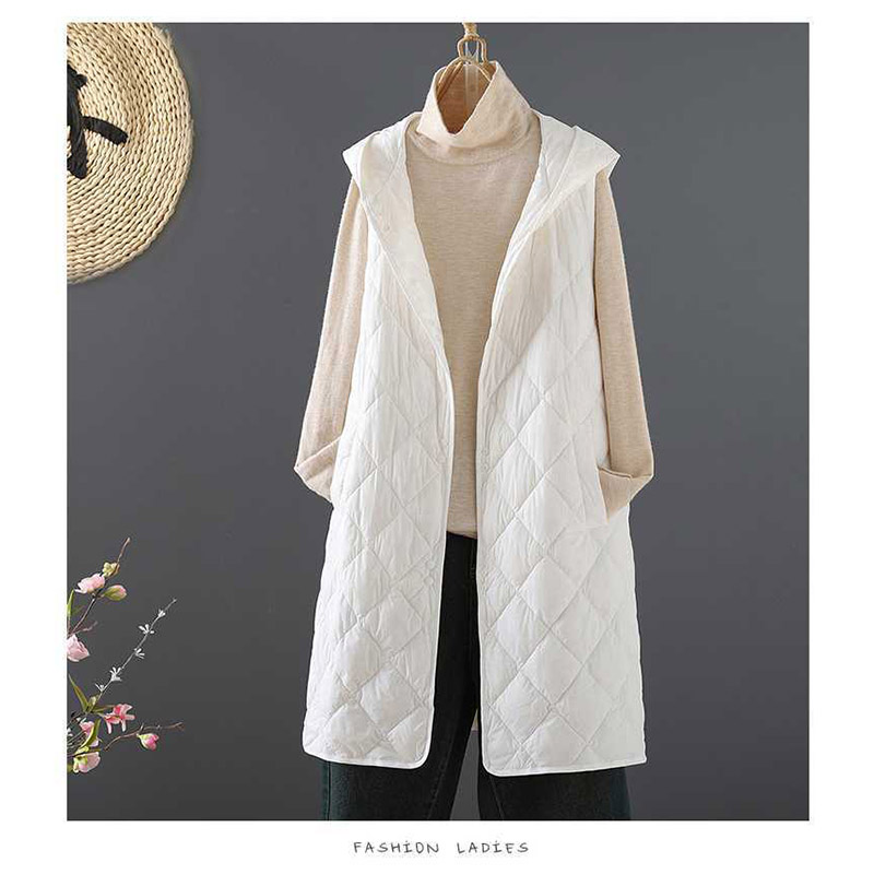 ダウンベスト レディース フード付き ロング ジレ ロングジレ ジャケット アウター ベスト 通学 フェイクダウン 羽織り 体型カバー 秋冬 中綿 軽い通勤 暖かい