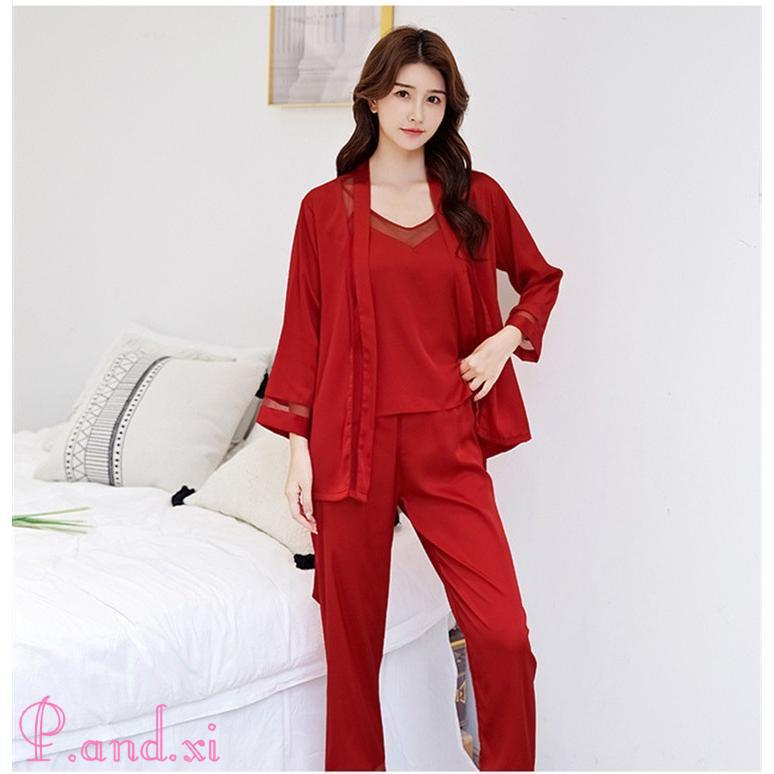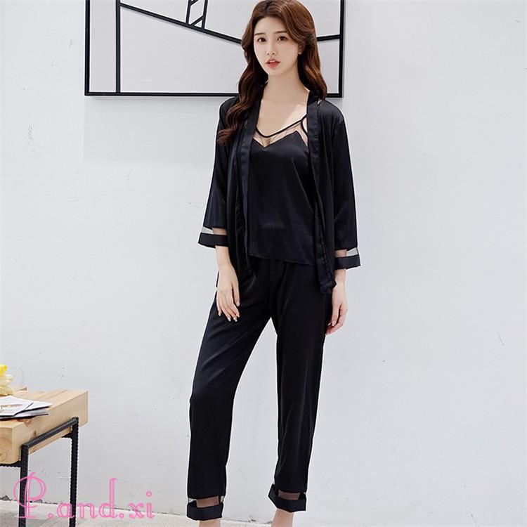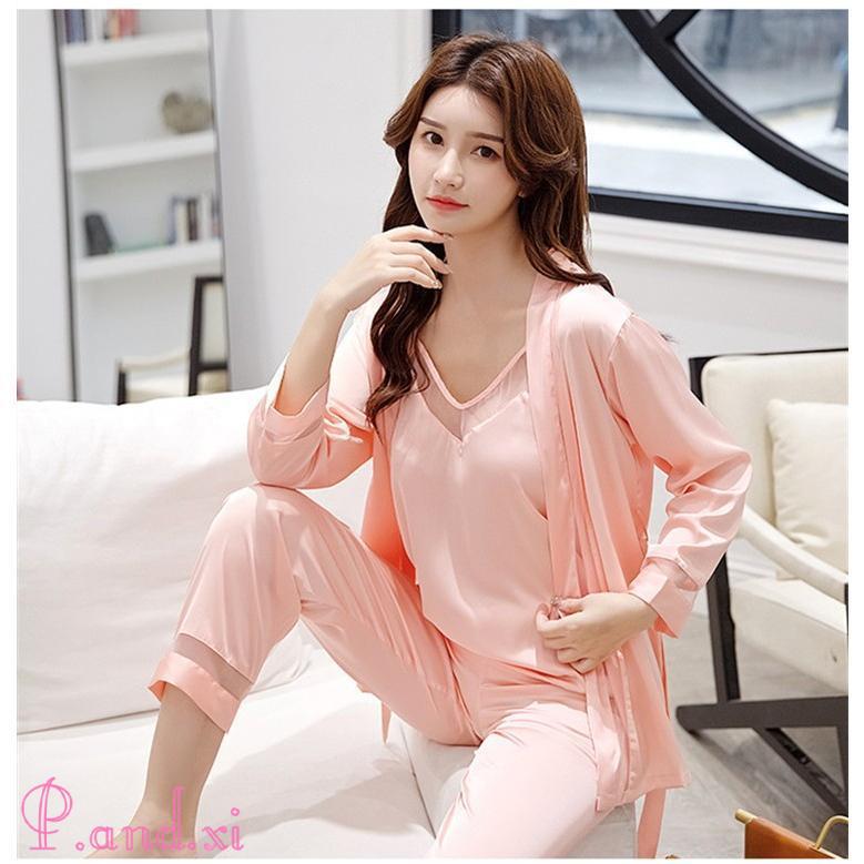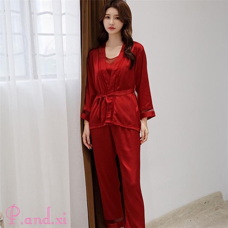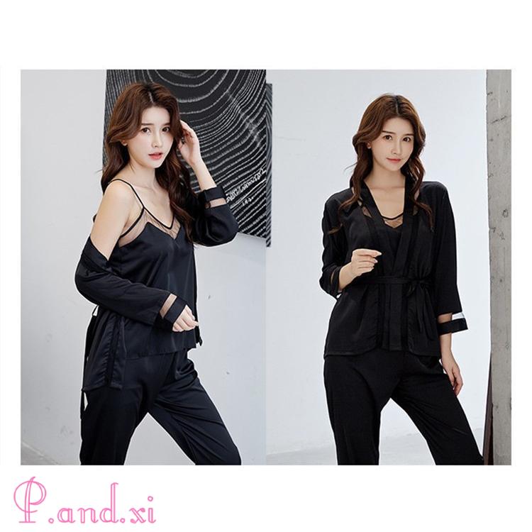 パジャマ レディース ルームウェア 3点セット 部屋着 夏 キャミソール ロングパンツ カーディガン 羽織 ロングパンツ ネグリジェ ナイトウェア サテン 春 夏 シンプル 寝巻き パジャマ セット ルームウエア レディース 部屋着 長袖 かわいい
