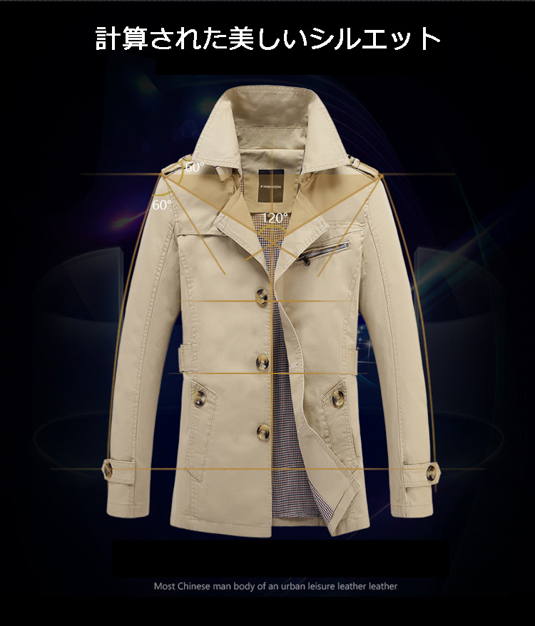 ■商品名:綿100% ジャケット ピーコート Pコート トレンチコート コート アウター ショート丈 上着 メンズ ボタン ポケット