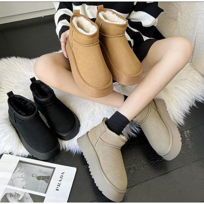 冬新入荷厚底ムートンブーツ もこもこ スノーブーツ 防寒靴 撥水 防汚 裏起毛 保温 防滑