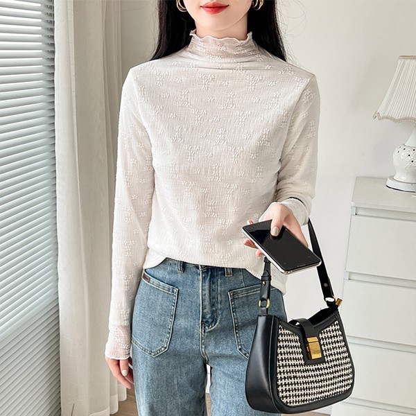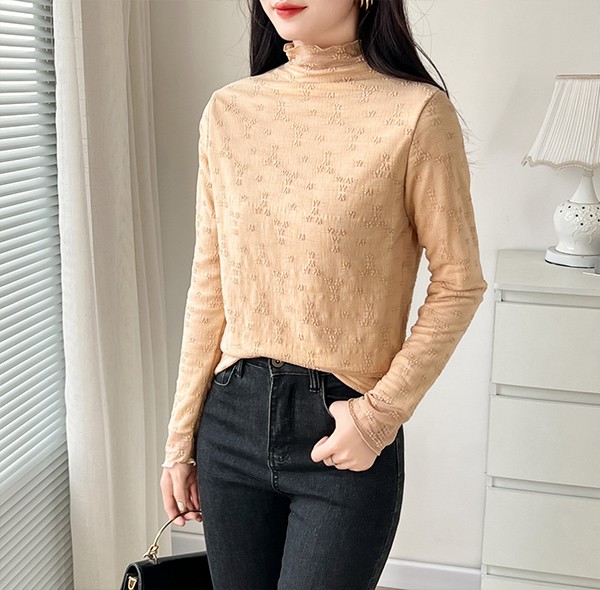 レース トップス レース ブラウス 総レース 裏起毛 タンクトップ 立ち襟 シースルー トップス ハイネック 花柄 レディース 韓国 ファッション 透け感 伸縮性あり 着やすい 柔らかい 重ね着 きれい 優しい ブラック黒 ホワイト白 肌色 ベージュL9M3