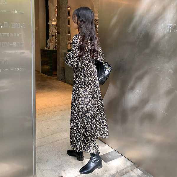 プリントワンピース ミモレ丈 ロングワンピース 長袖 上品大きいサイズ有り SからXXL通勤通学20代30代40代50代60代
