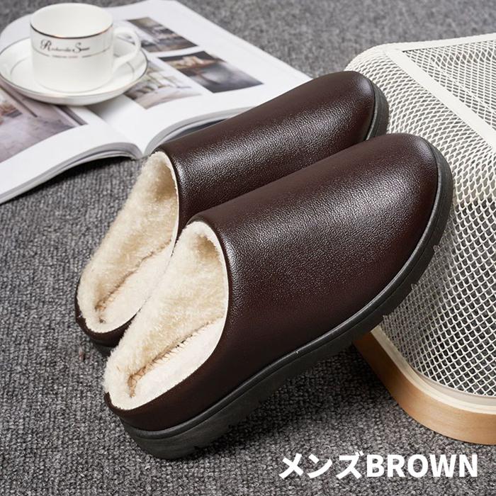 スリッパ 革 裏ボア 裏起毛 防水 柔らかい ルームスリッパ 厚底 暖かい おしゃれ あったか 滑り止め 秋冬 無地 部屋靴 室内履き 防寒 オフィス モコモコ ルームシューズ レザー 合皮 ふわふわ もこもこ 男女兼用 メンズ レディース