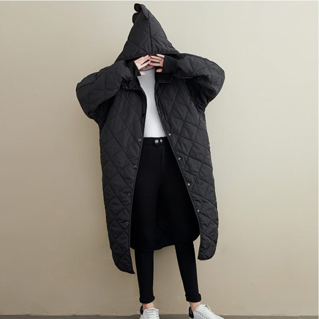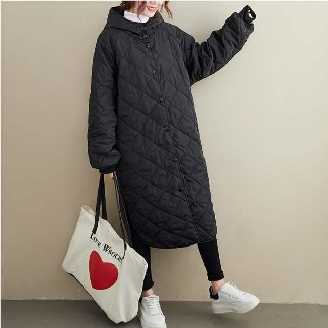 キルティングコート ロング レディース モード系 アウター フード付き 個性的 大人きれいめ キルト 秋冬 チェスターコート 韓国ファッション ダウン